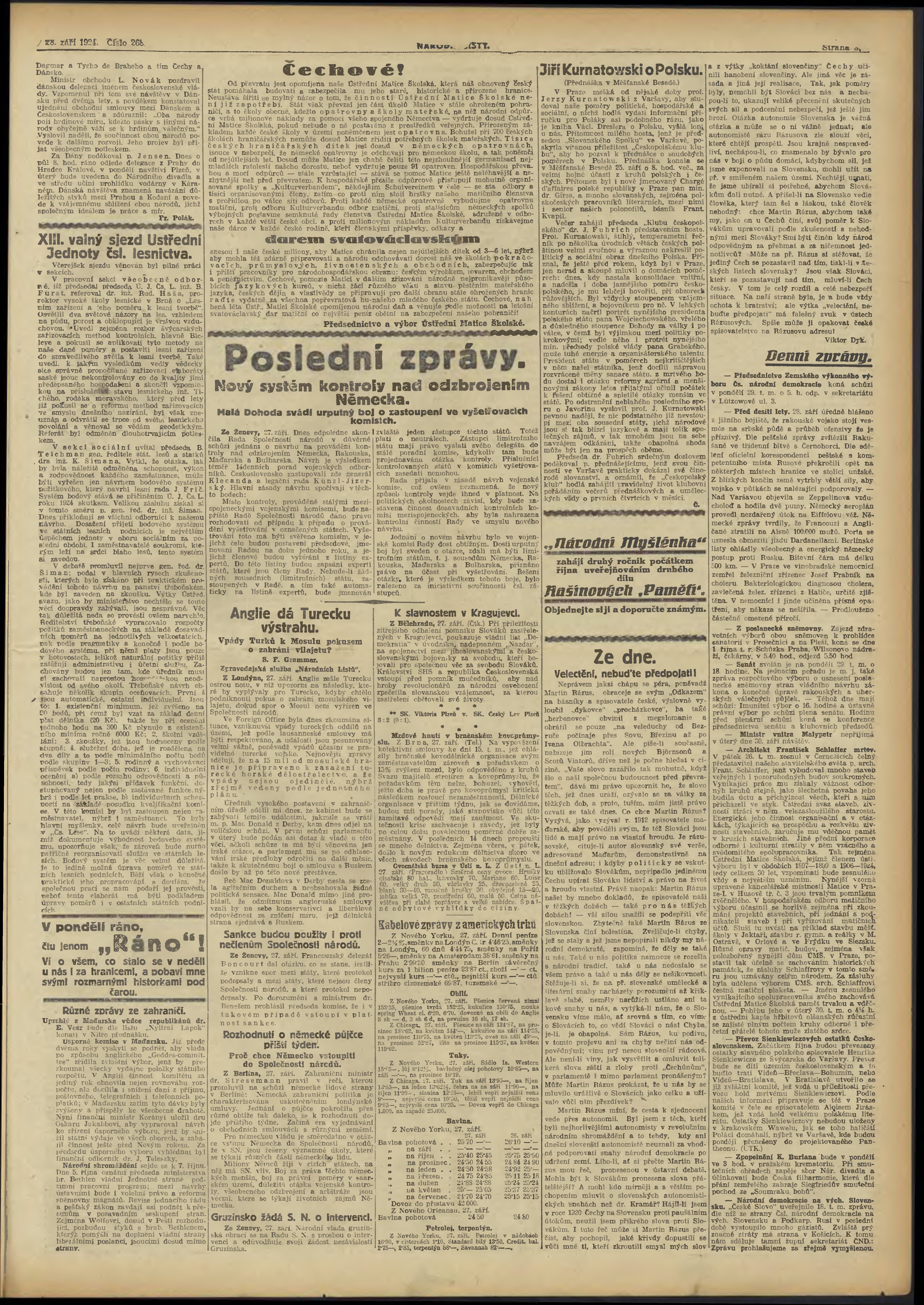 * Datum vydání výtisku: 28.9.1924 Číslo výtisku: 268