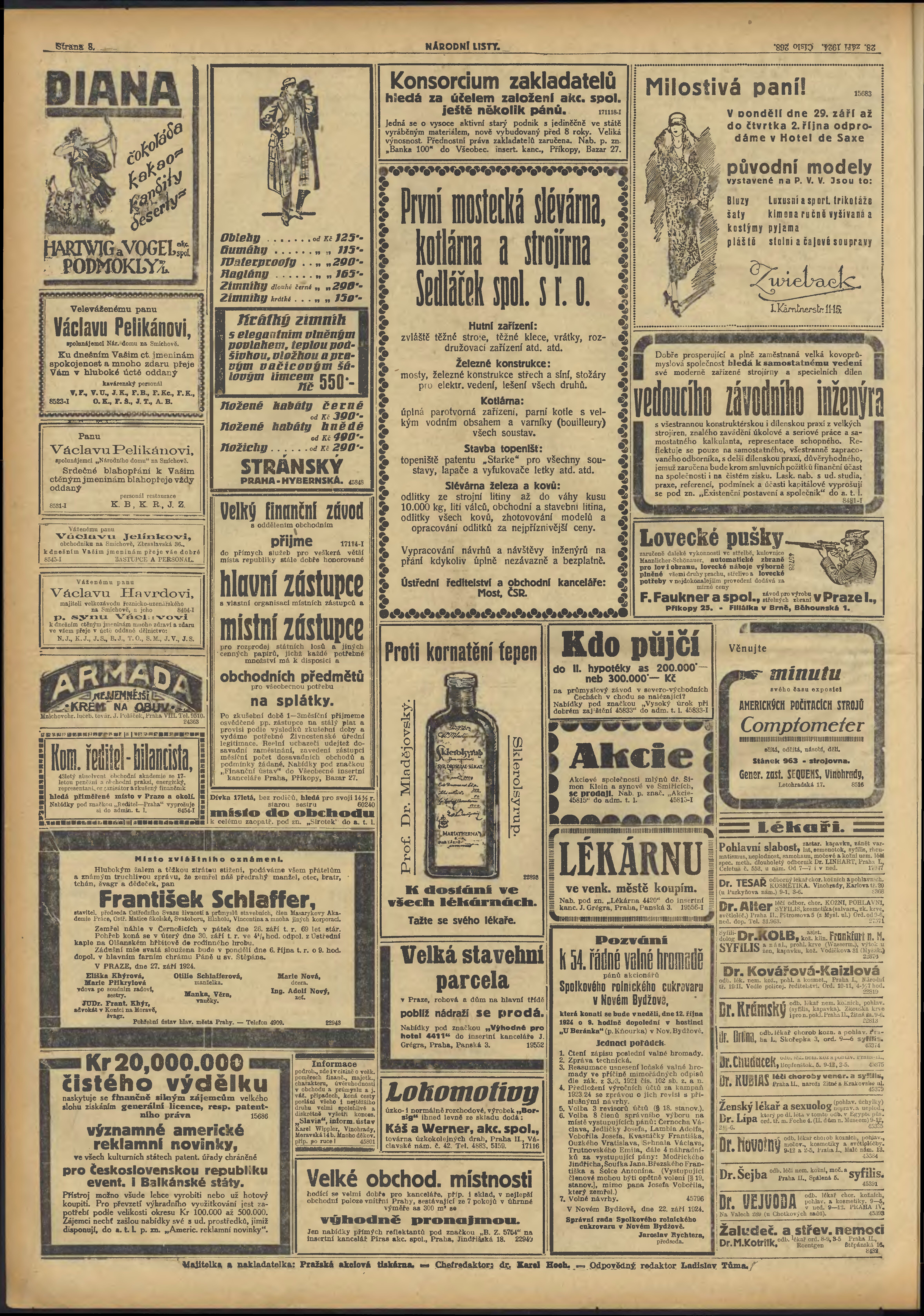* Datum vydání výtisku: 28.9.1924 Číslo výtisku: 268