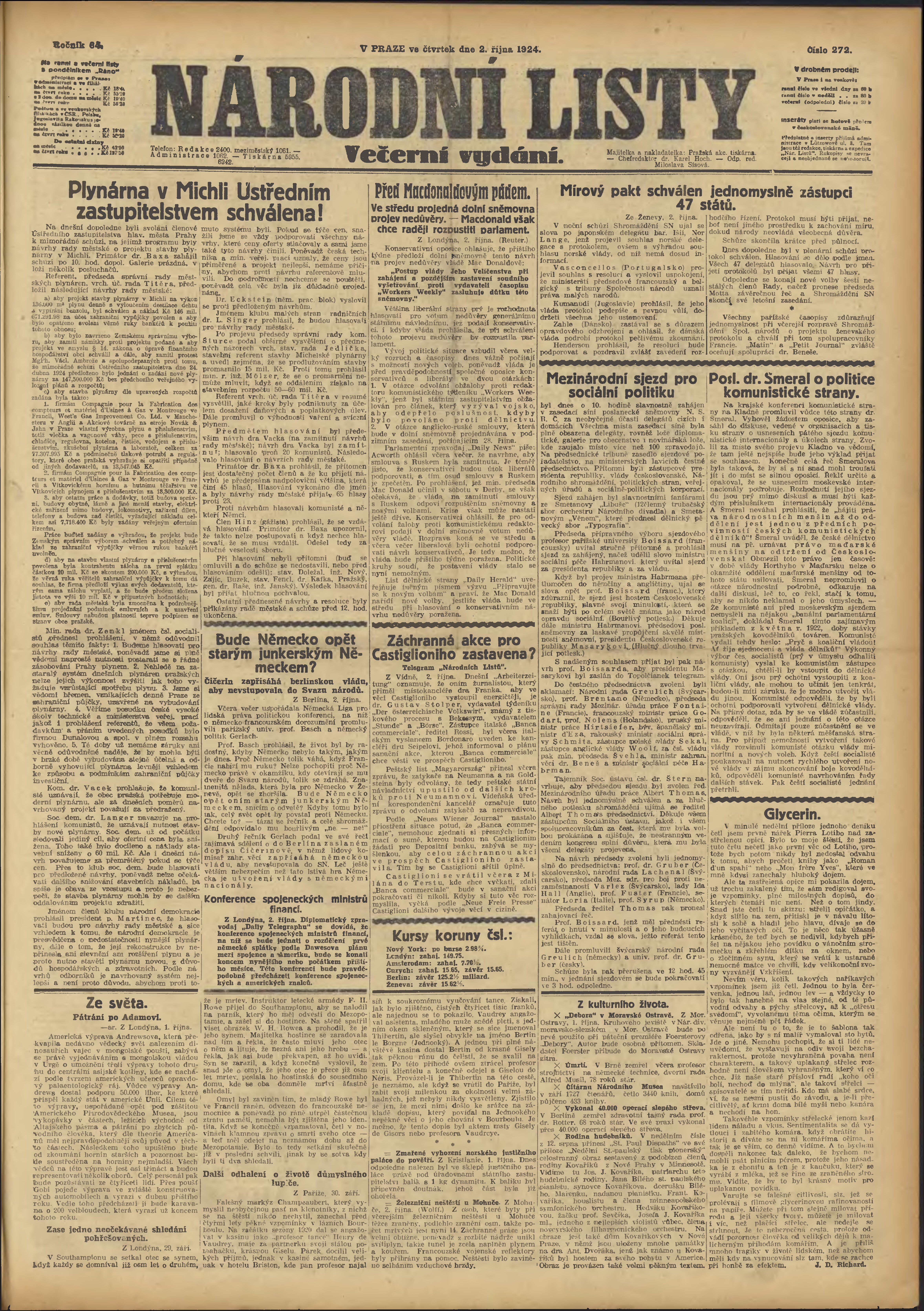 * Datum vydání výtisku: 2.10.1924 Číslo výtisku: 272 Poznámky k výtisku: večerní vydání;
