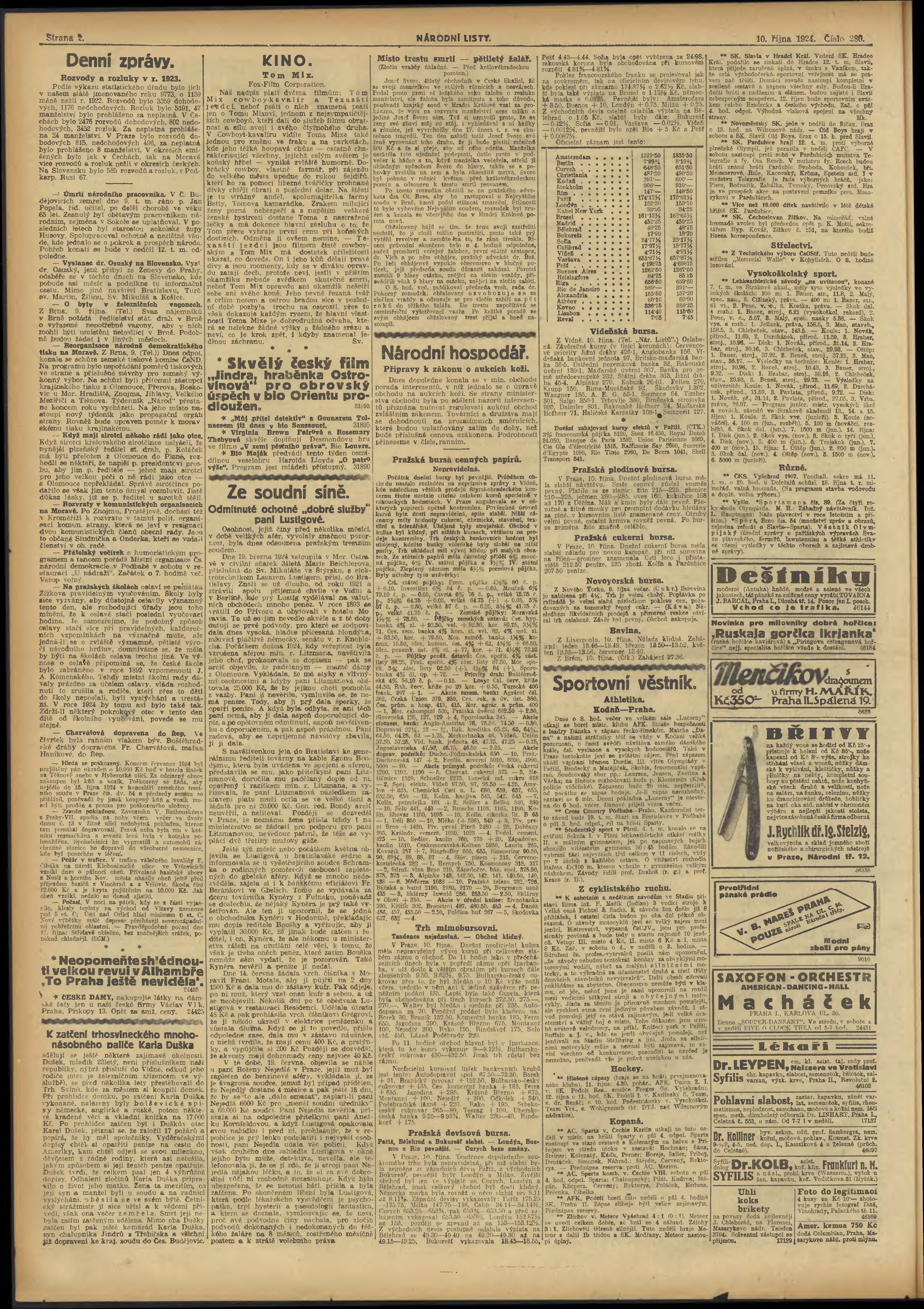 * Datum vydání výtisku: 10.10.1924 Číslo výtisku: 280 Poznámky k výtisku: večerní vydání;