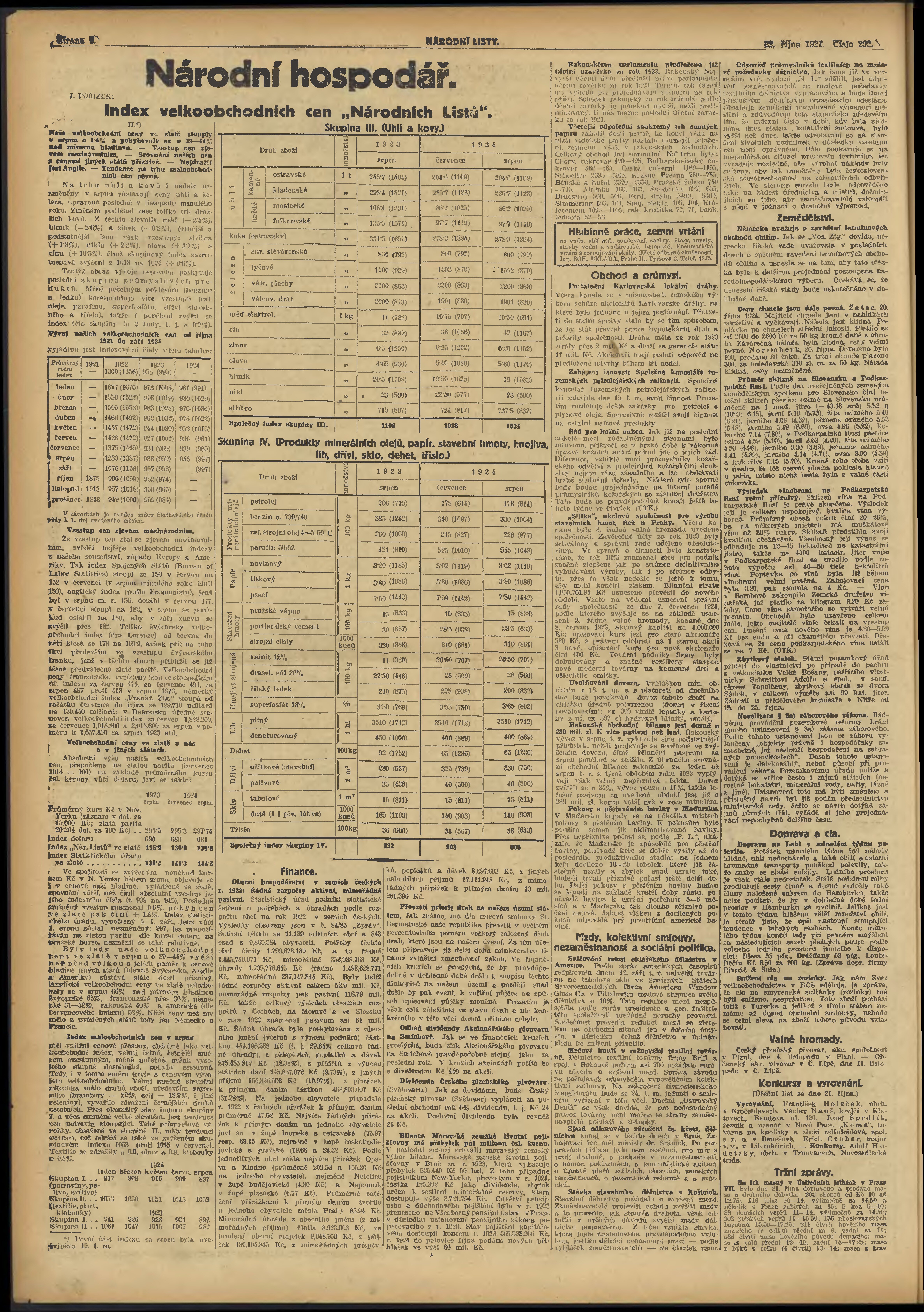 * Datum vydání výtisku: 22.10.1924 Číslo výtisku: 292
