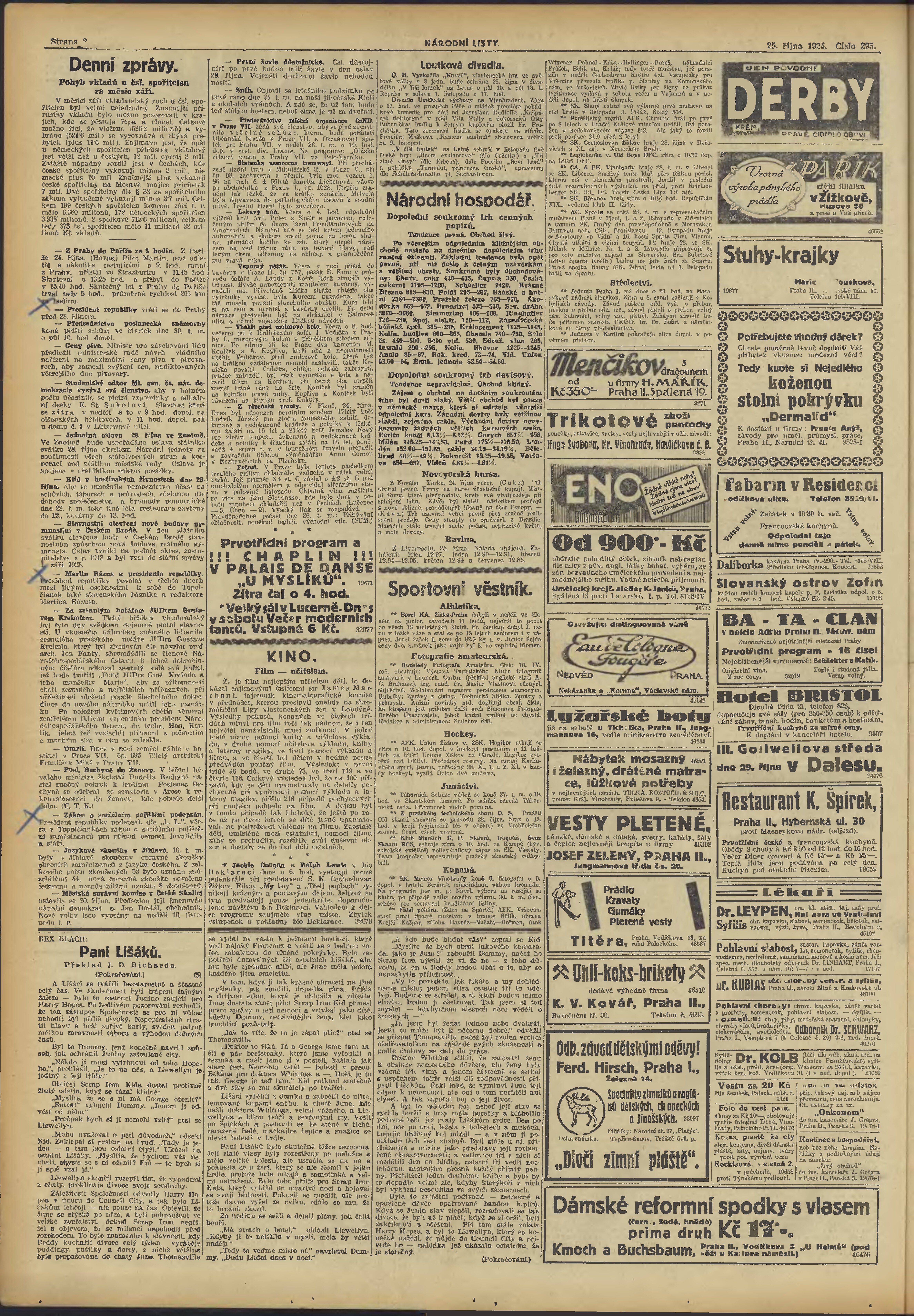 * Datum vydání výtisku: 25.10.1924 Číslo výtisku: 295 Poznámky k výtisku: večerní vydání;