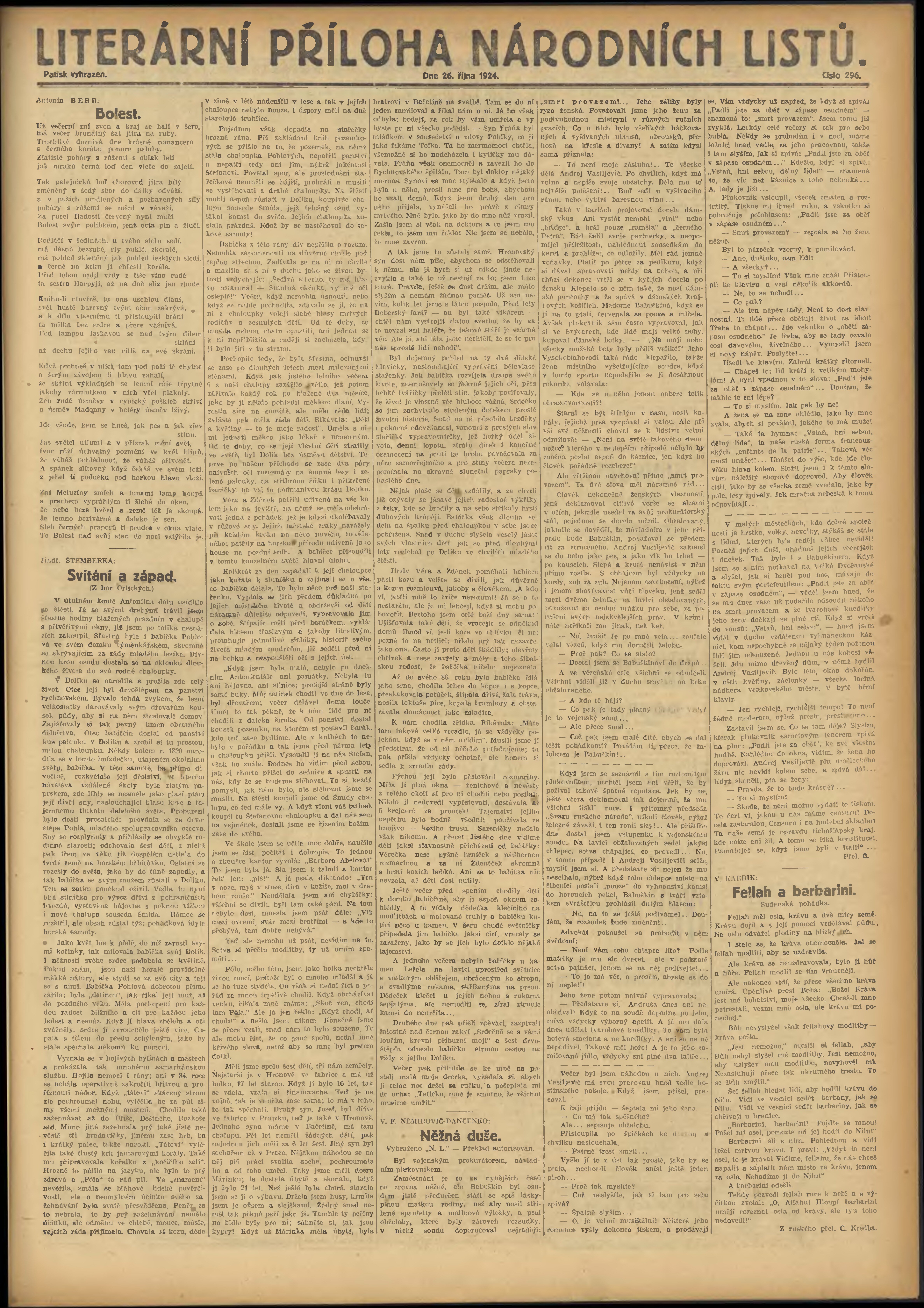 * Datum vydání výtisku: 26.10.1924 Číslo výtisku: 296 Typ výtisku: příloha