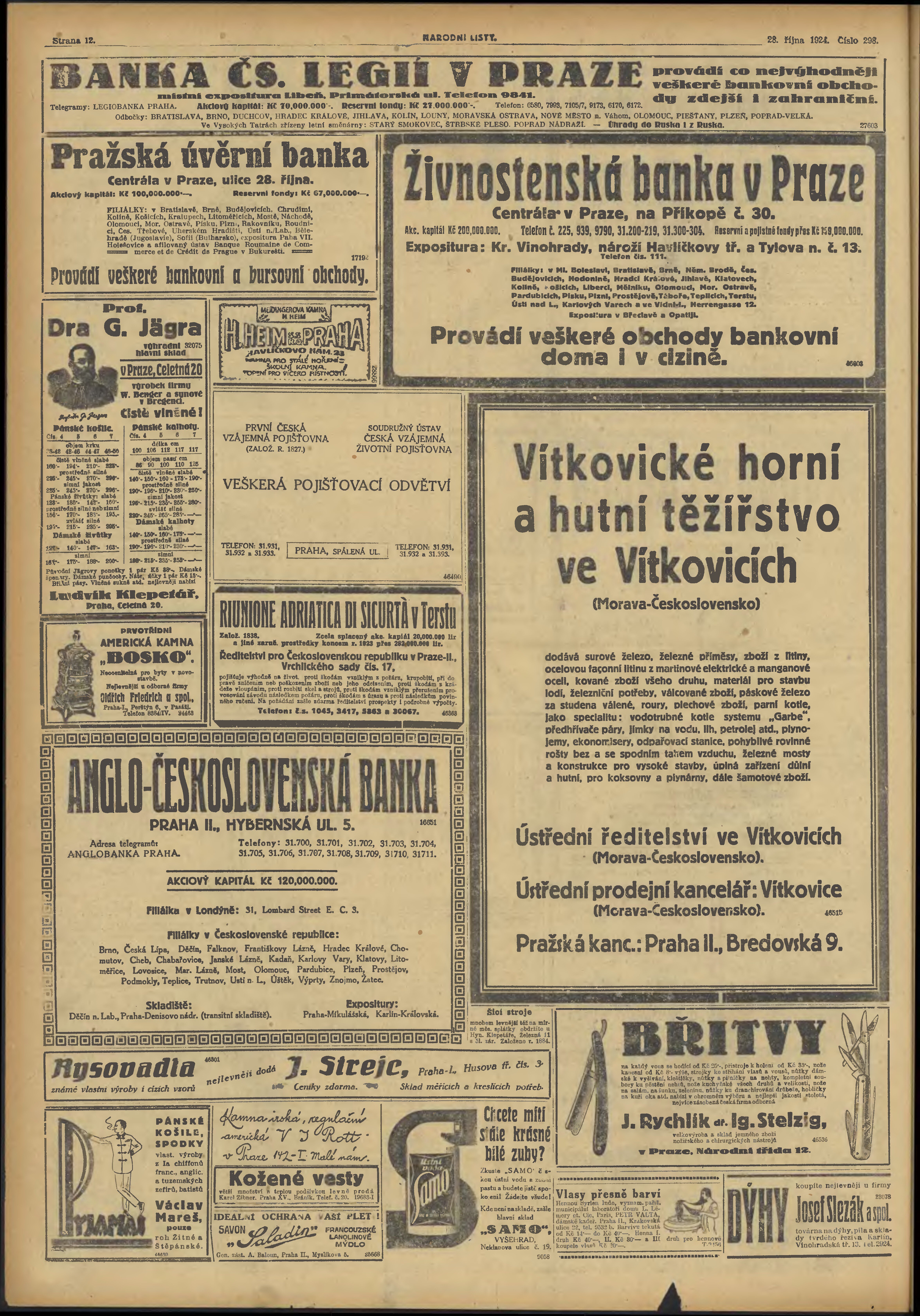 * Datum vydání výtisku: 28.10.1924 Číslo výtisku: 298 Typ výtisku: příloha