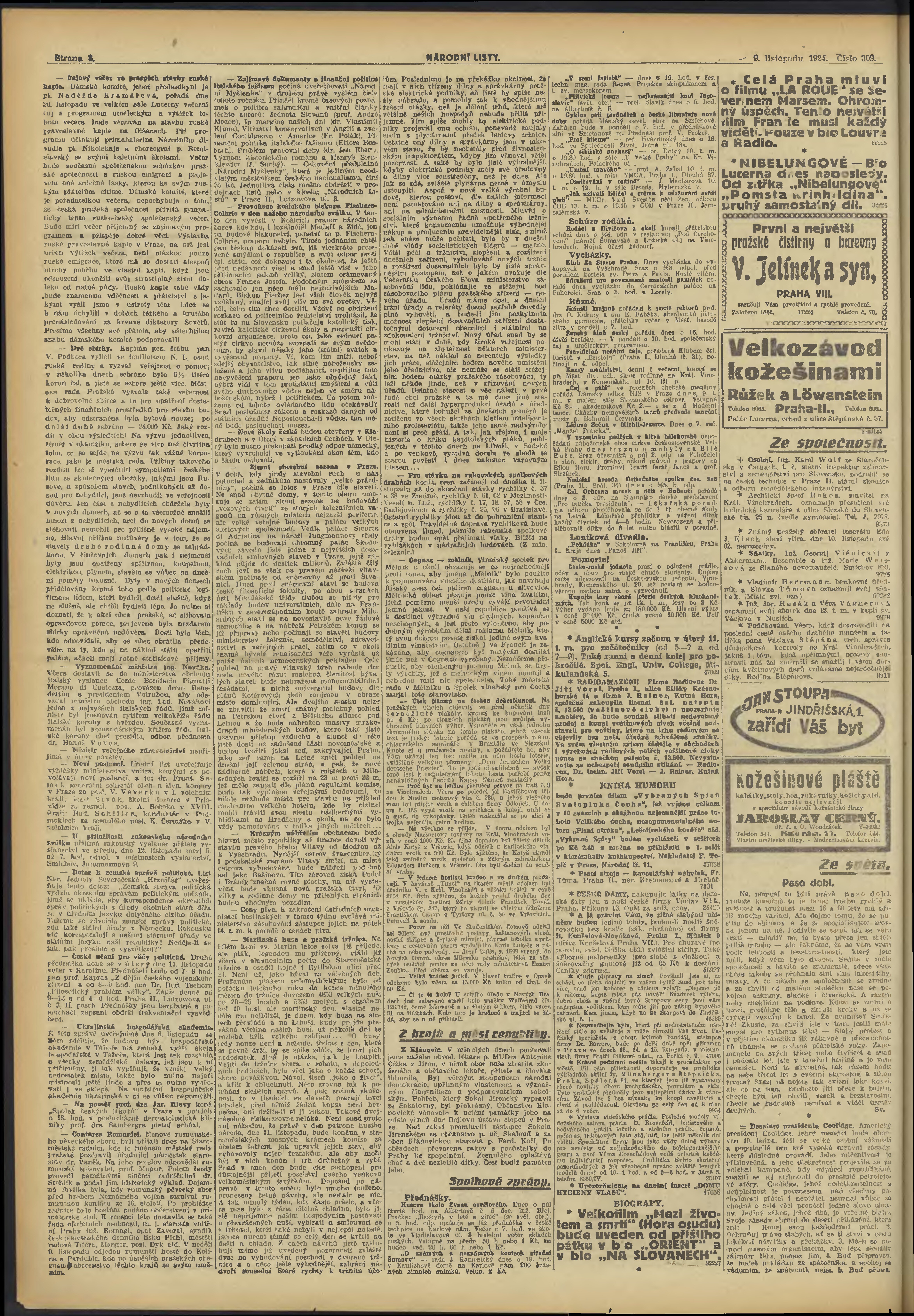 * Datum vydání výtisku: 9.11.1924 Číslo výtisku: 309