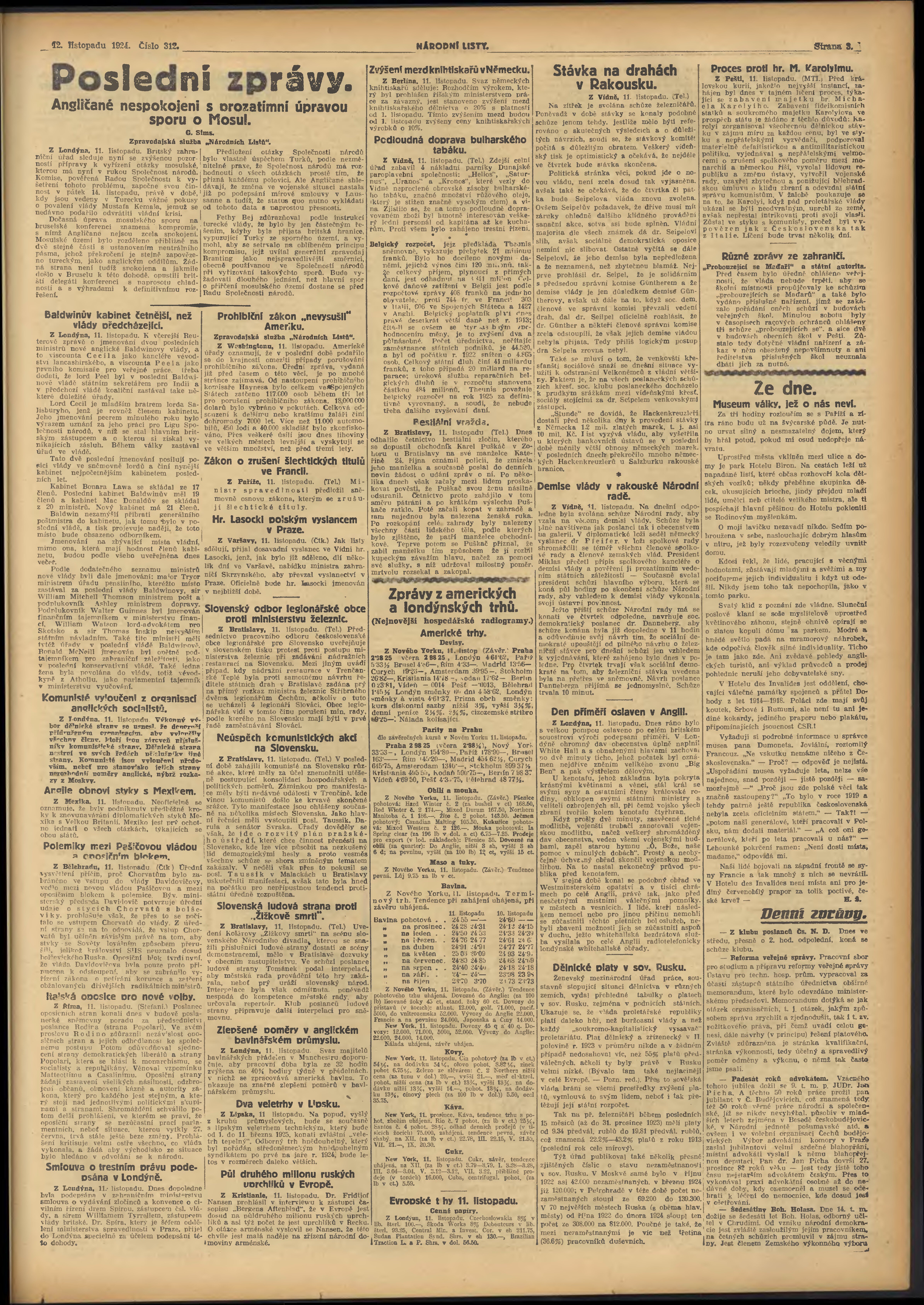 * Datum vydání výtisku: 12.11.1924 Číslo výtisku: 312