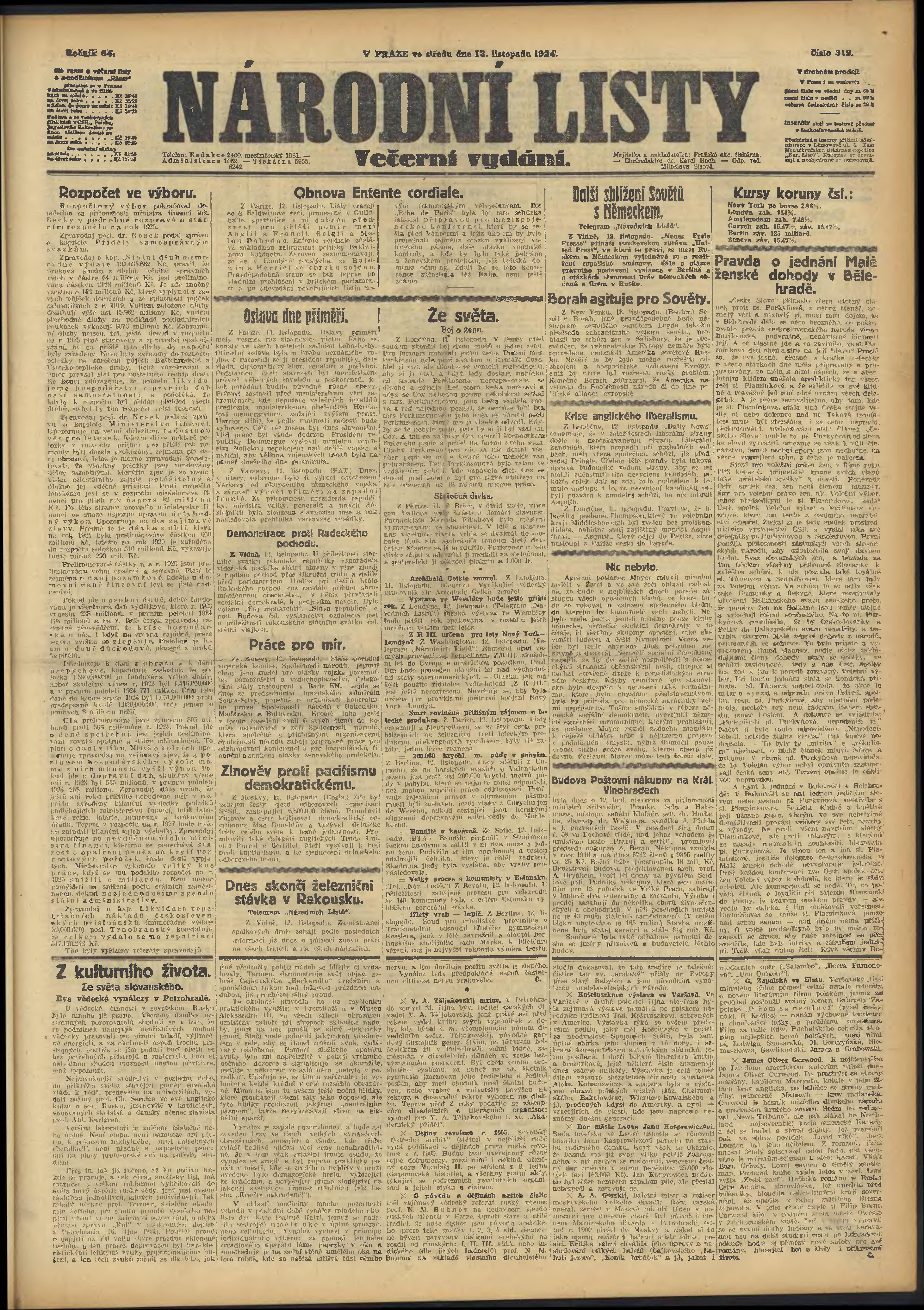 * Datum vydání výtisku: 12.11.1924 Číslo výtisku: 312 Poznámky k výtisku: večerní vydání;