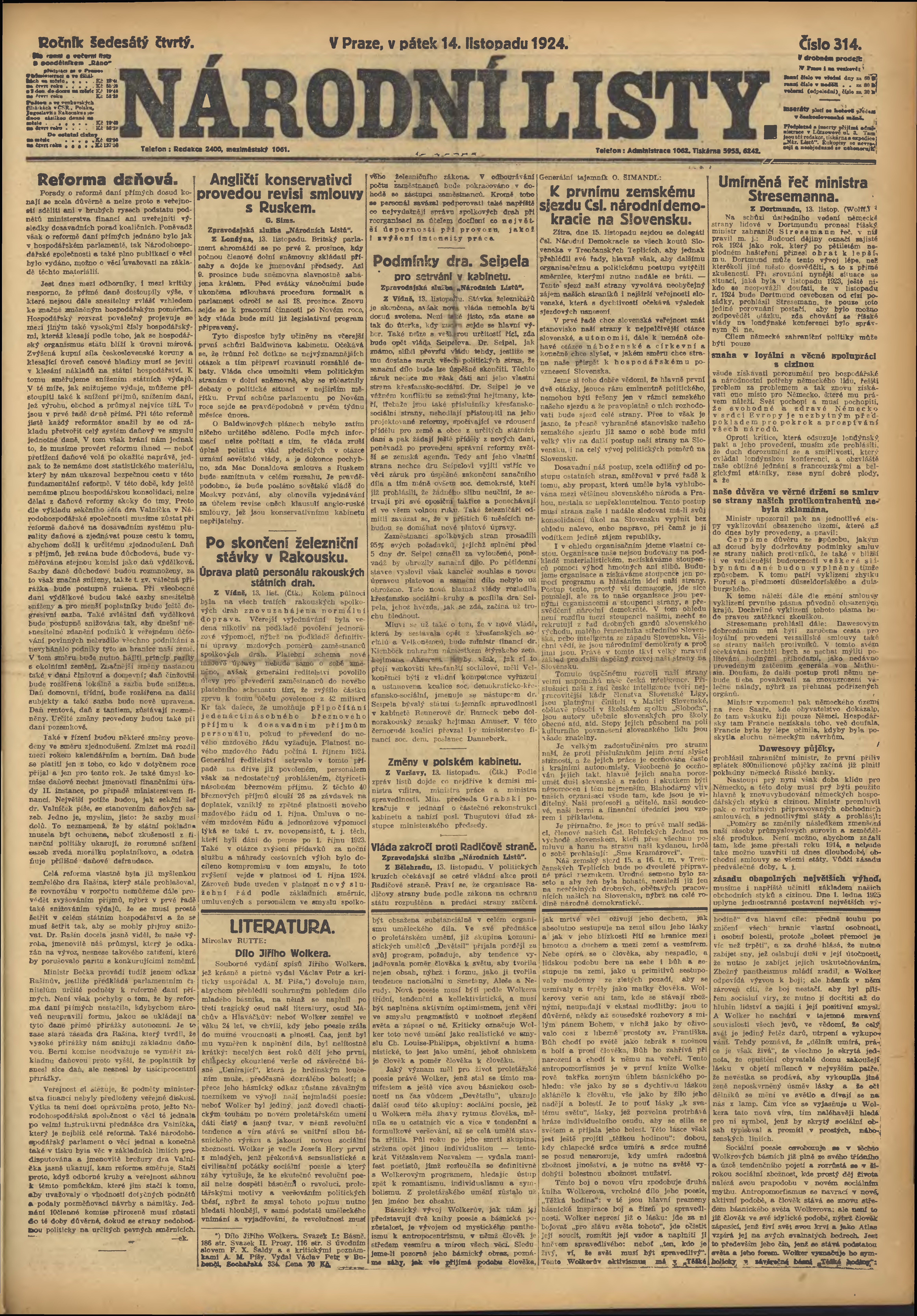 * Datum vydání výtisku: 14.11.1924 Číslo výtisku: 314