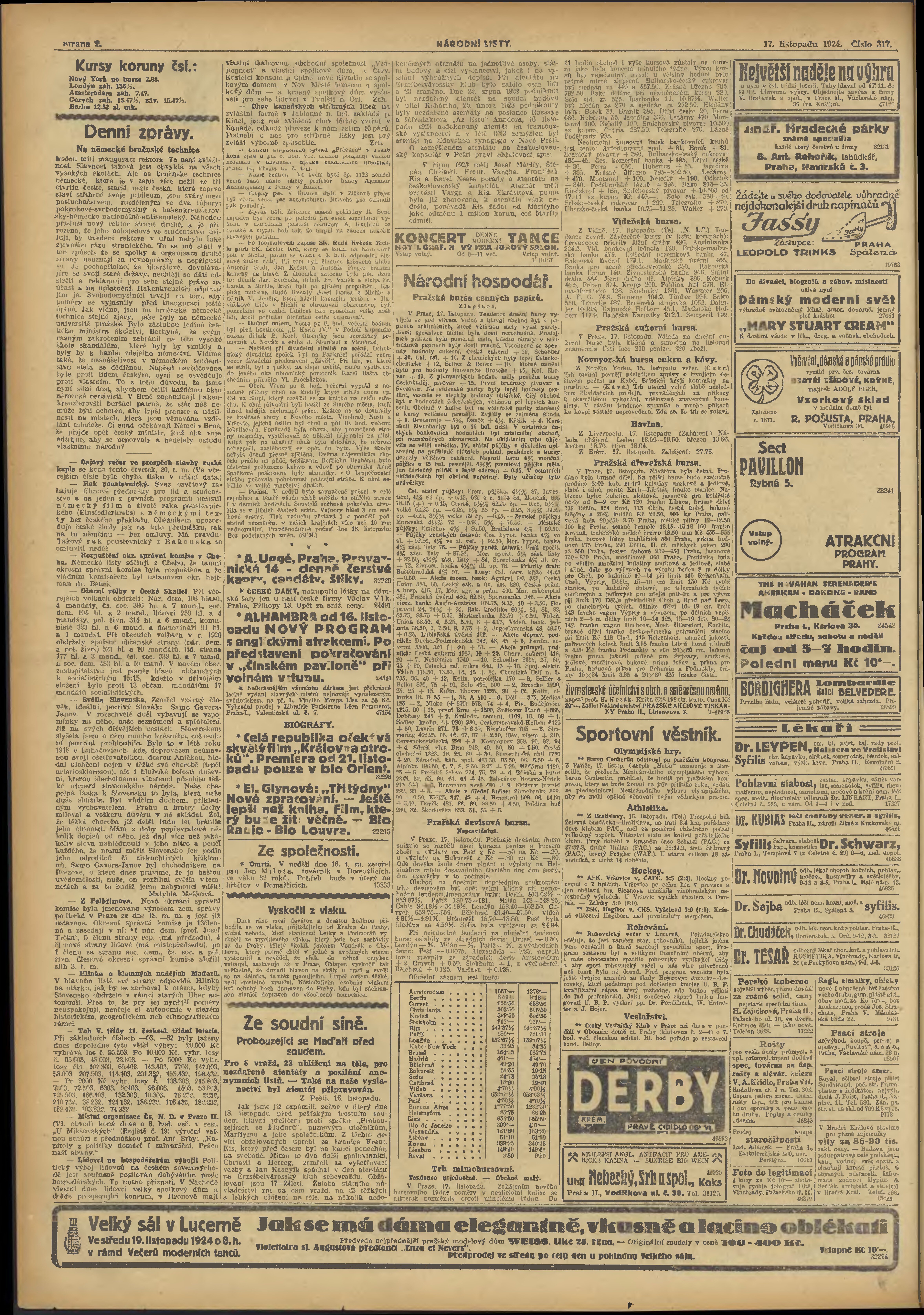 * Datum vydání výtisku: 17.11.1924 Číslo výtisku: 317 Poznámky k výtisku: večerní vydání;