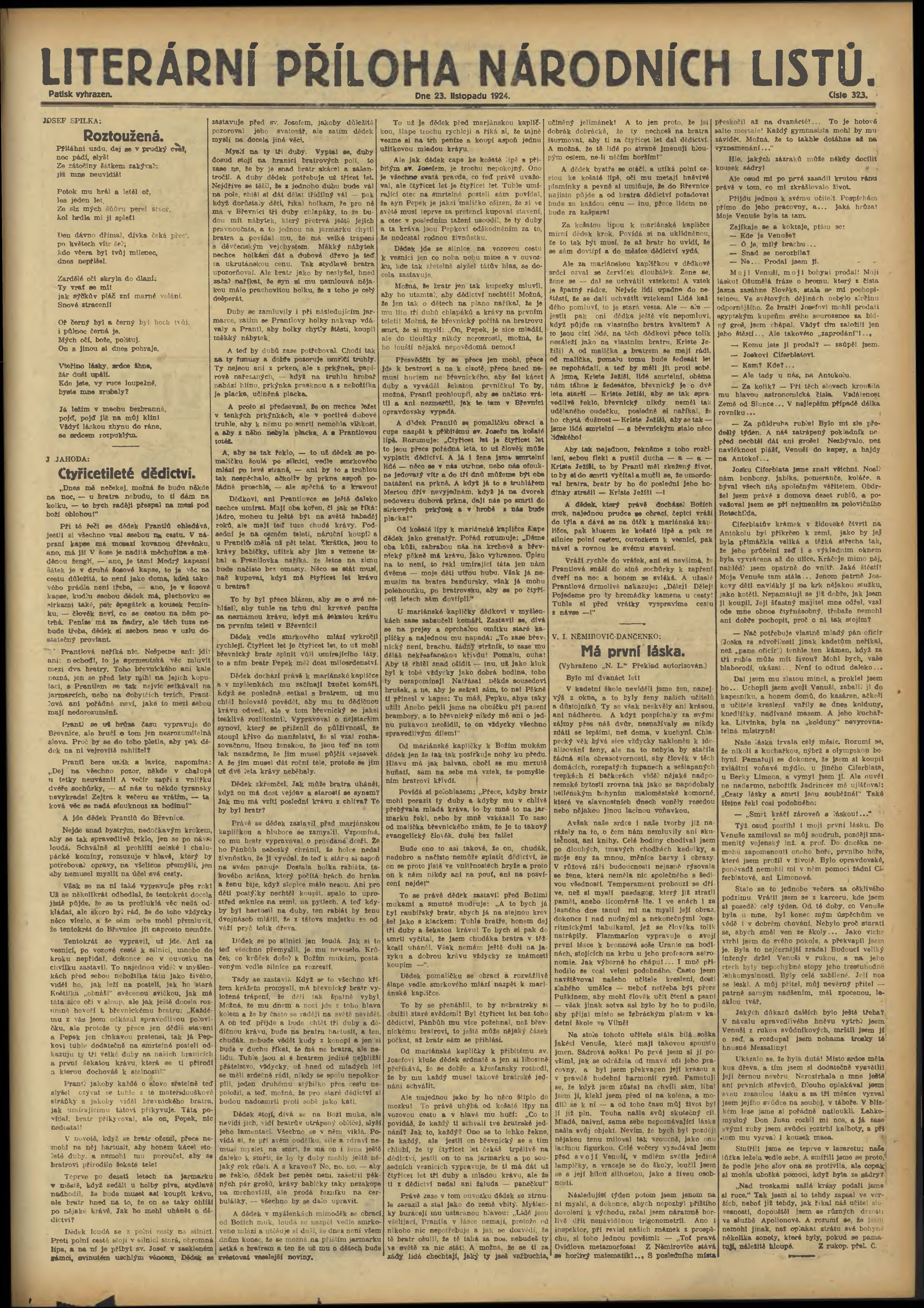 * Datum vydání výtisku: 23.11.1924 Číslo výtisku: 323 Typ výtisku: příloha