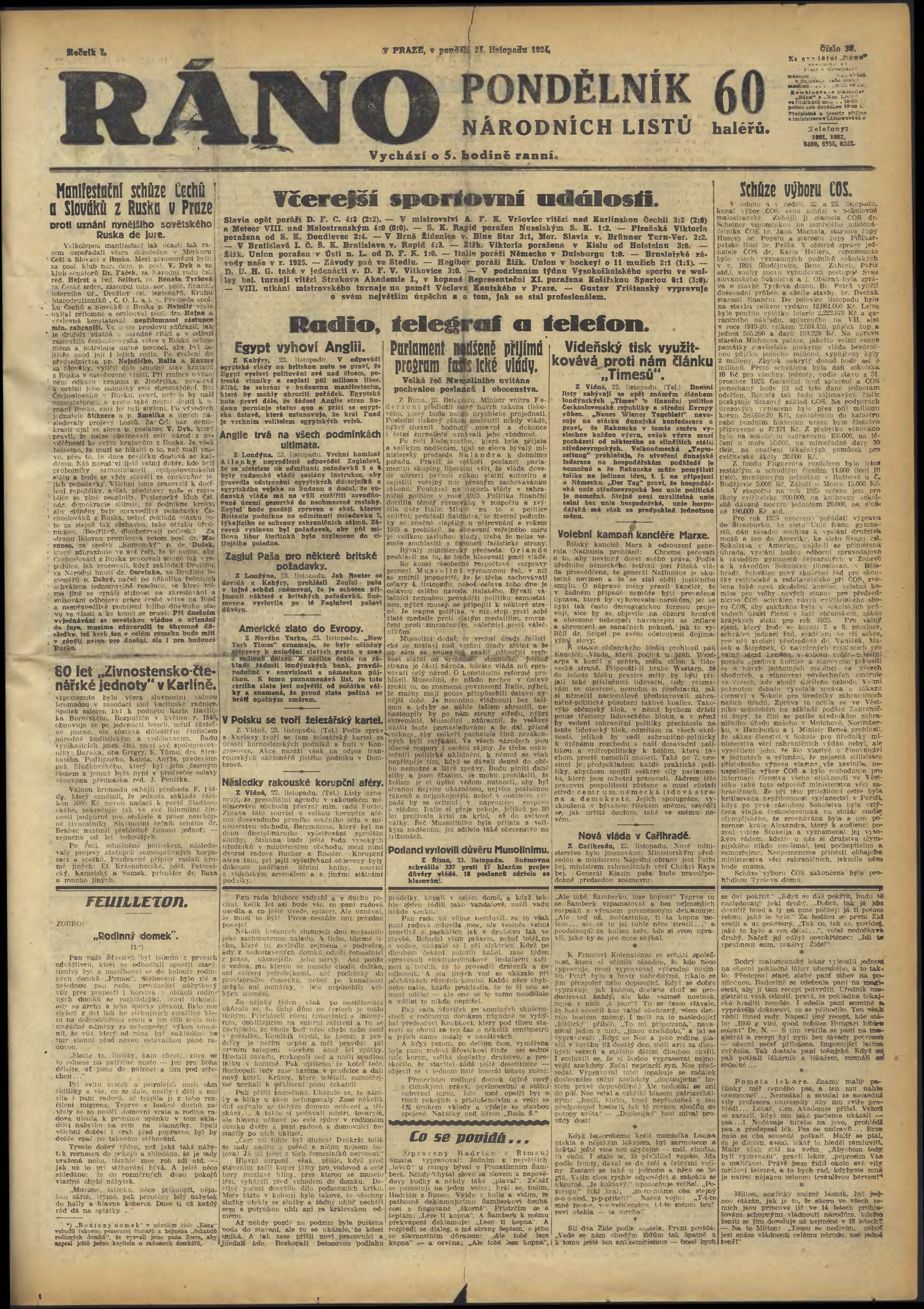 * Datum vydání výtisku: 24.11.1924 Číslo výtisku: 30