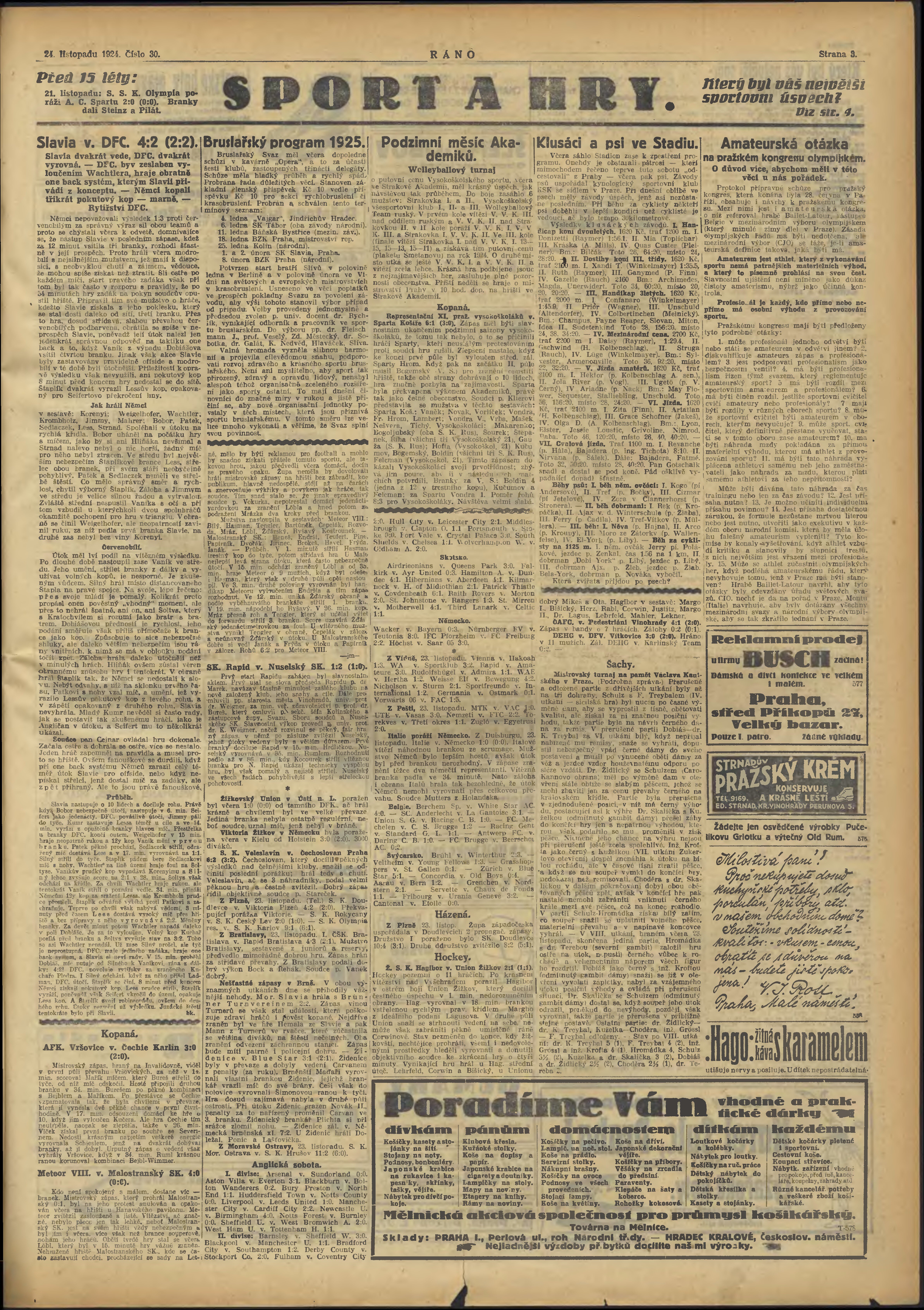 * Datum vydání výtisku: 24.11.1924 Číslo výtisku: 30