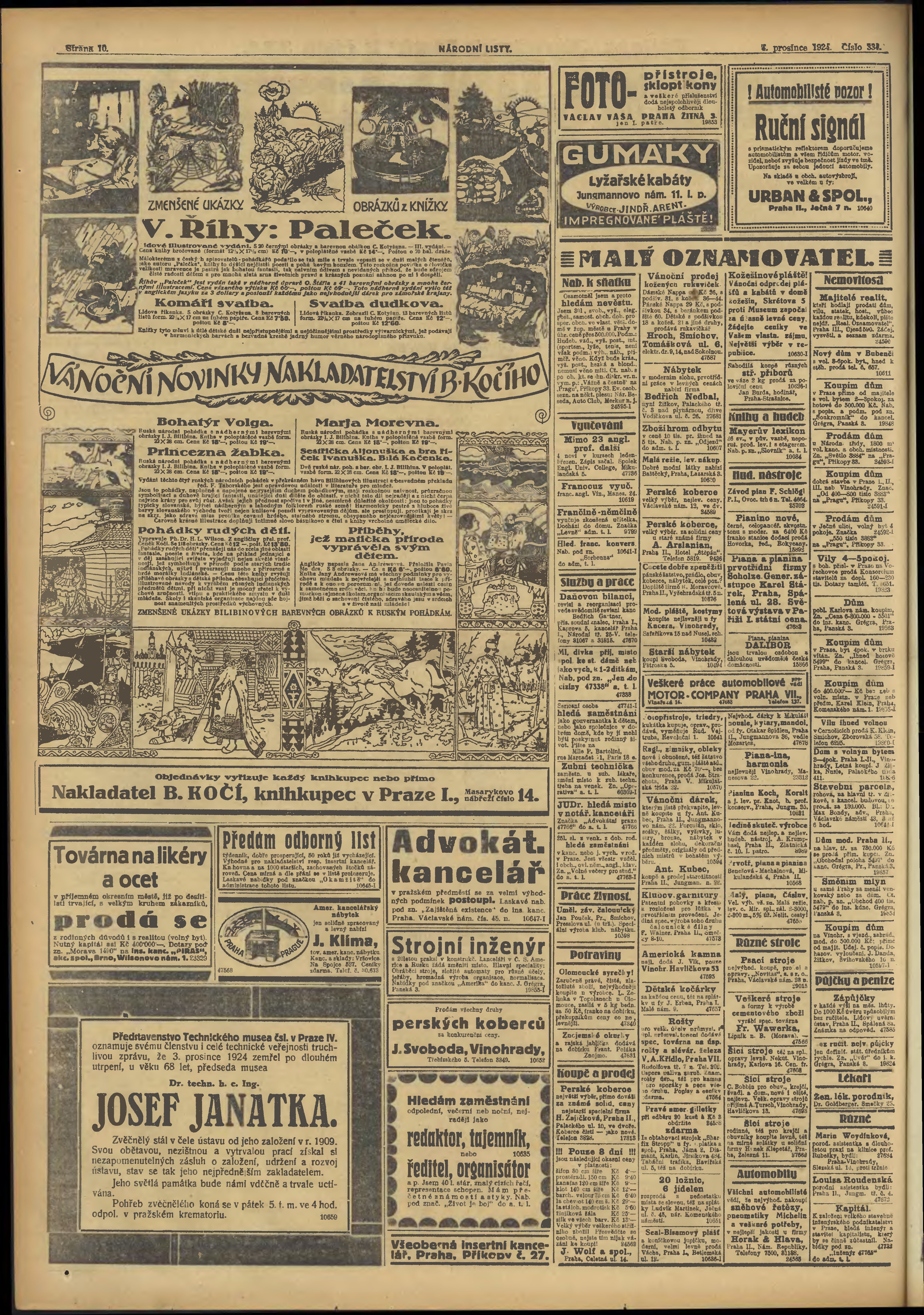 * Datum vydání výtisku: 4.12.1924 Číslo výtisku: 334 Typ výtisku: příloha
