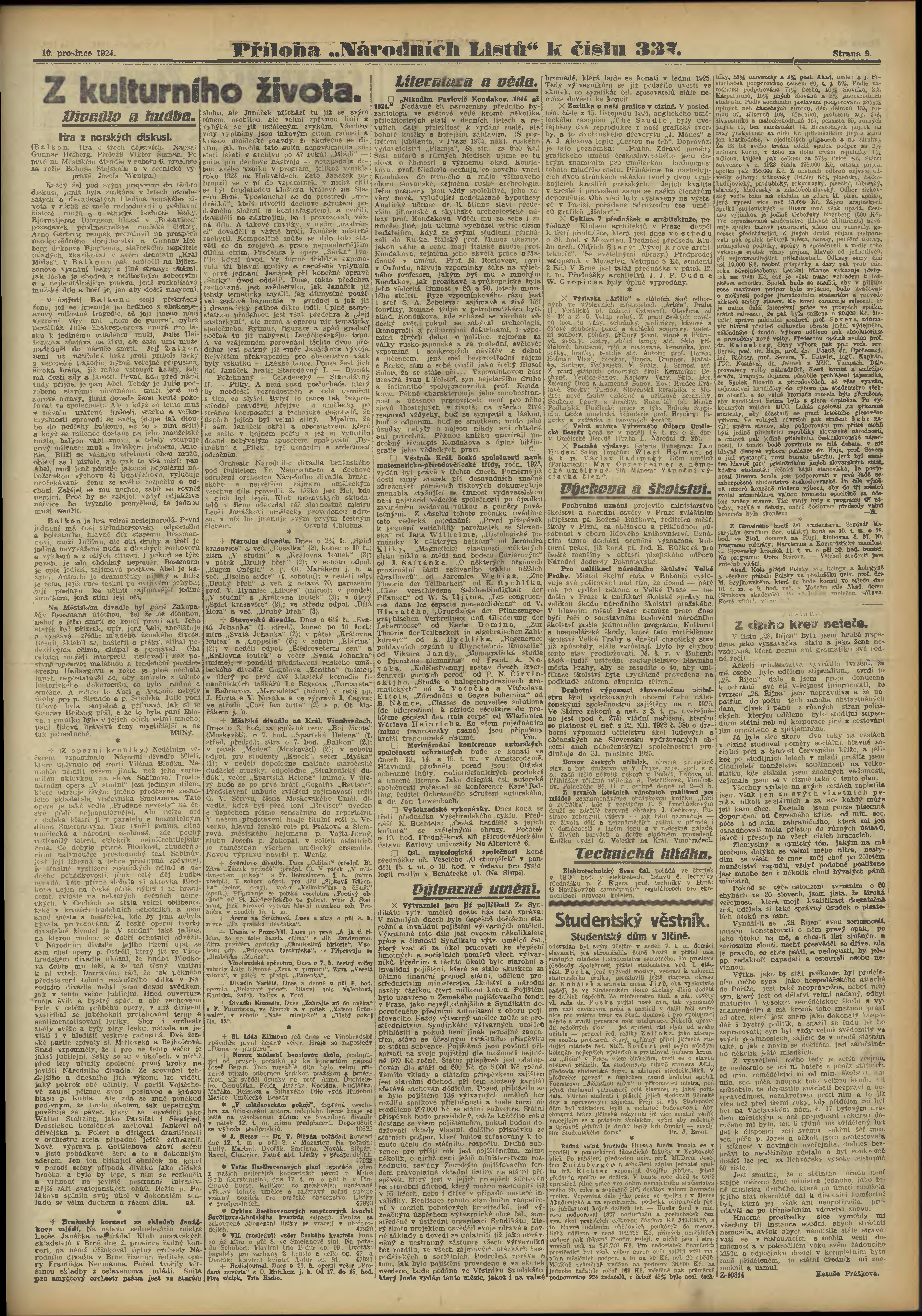 * Datum vydání výtisku: 10.12.1924 Číslo výtisku: 339 Typ výtisku: příloha Poznámky k výtisku: č. 337 (339) chybný údaj v číslování;