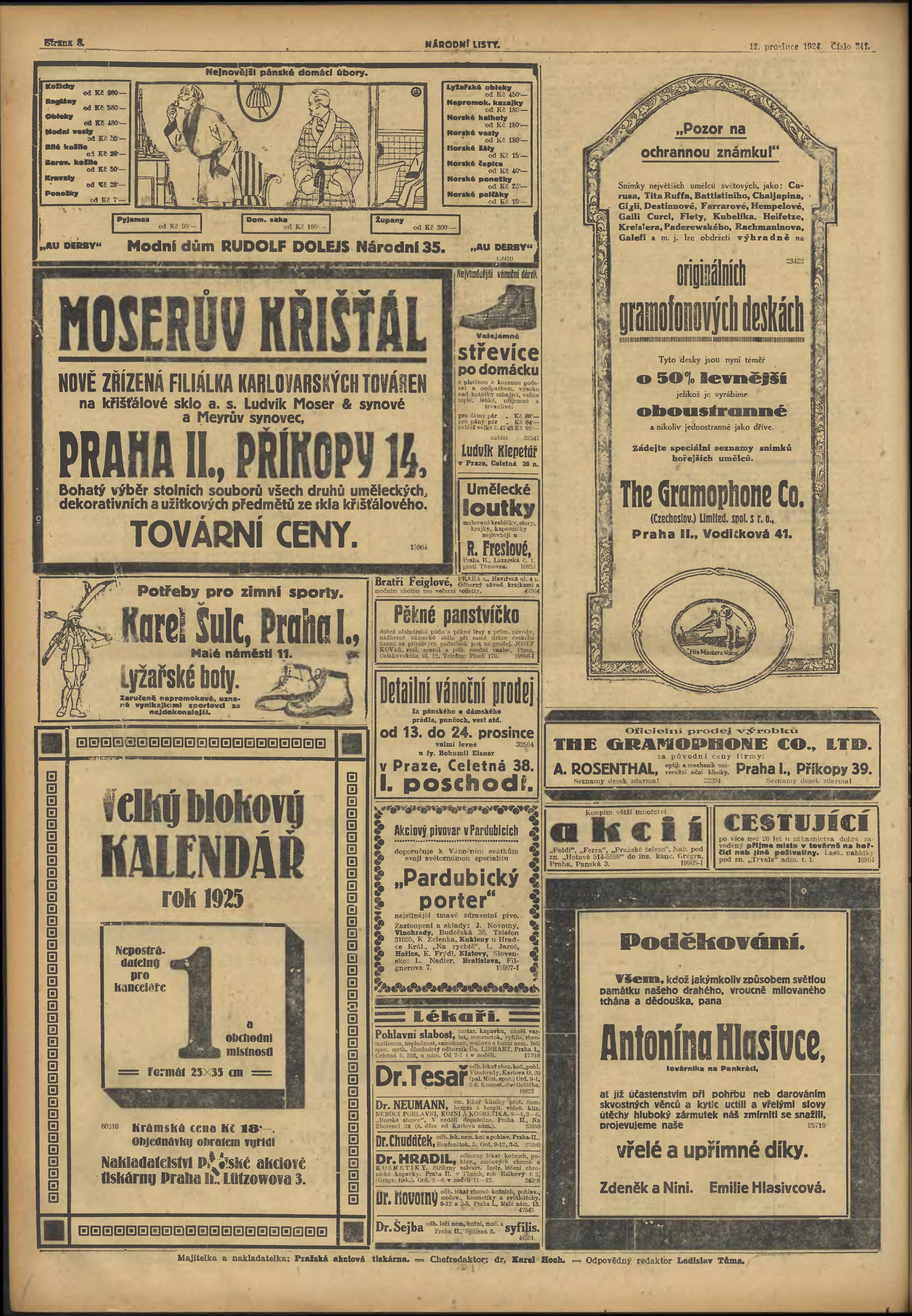 * Datum vydání výtisku: 12.12.1924 Číslo výtisku: 341