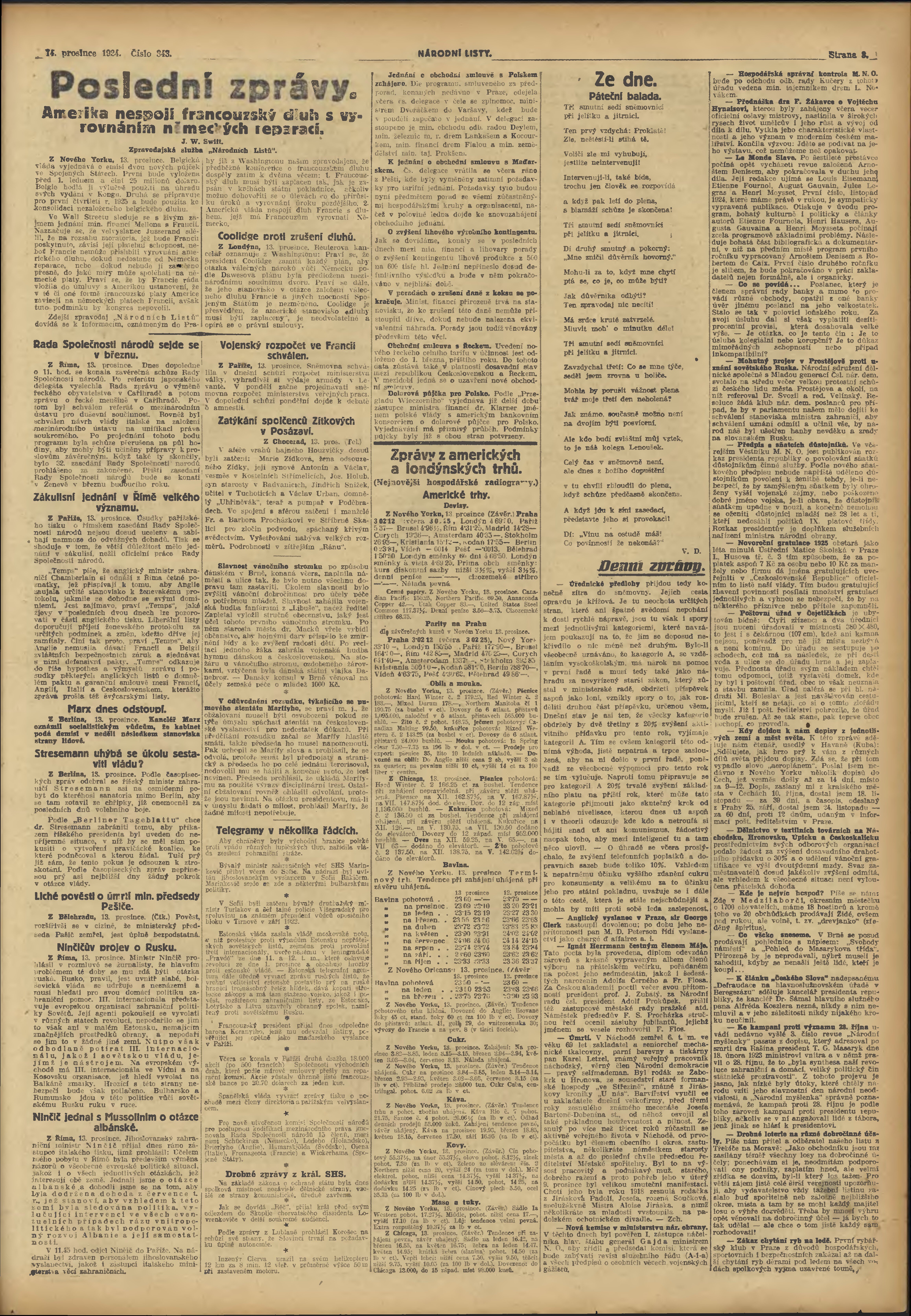 * Datum vydání výtisku: 14.12.1924 Číslo výtisku: 343