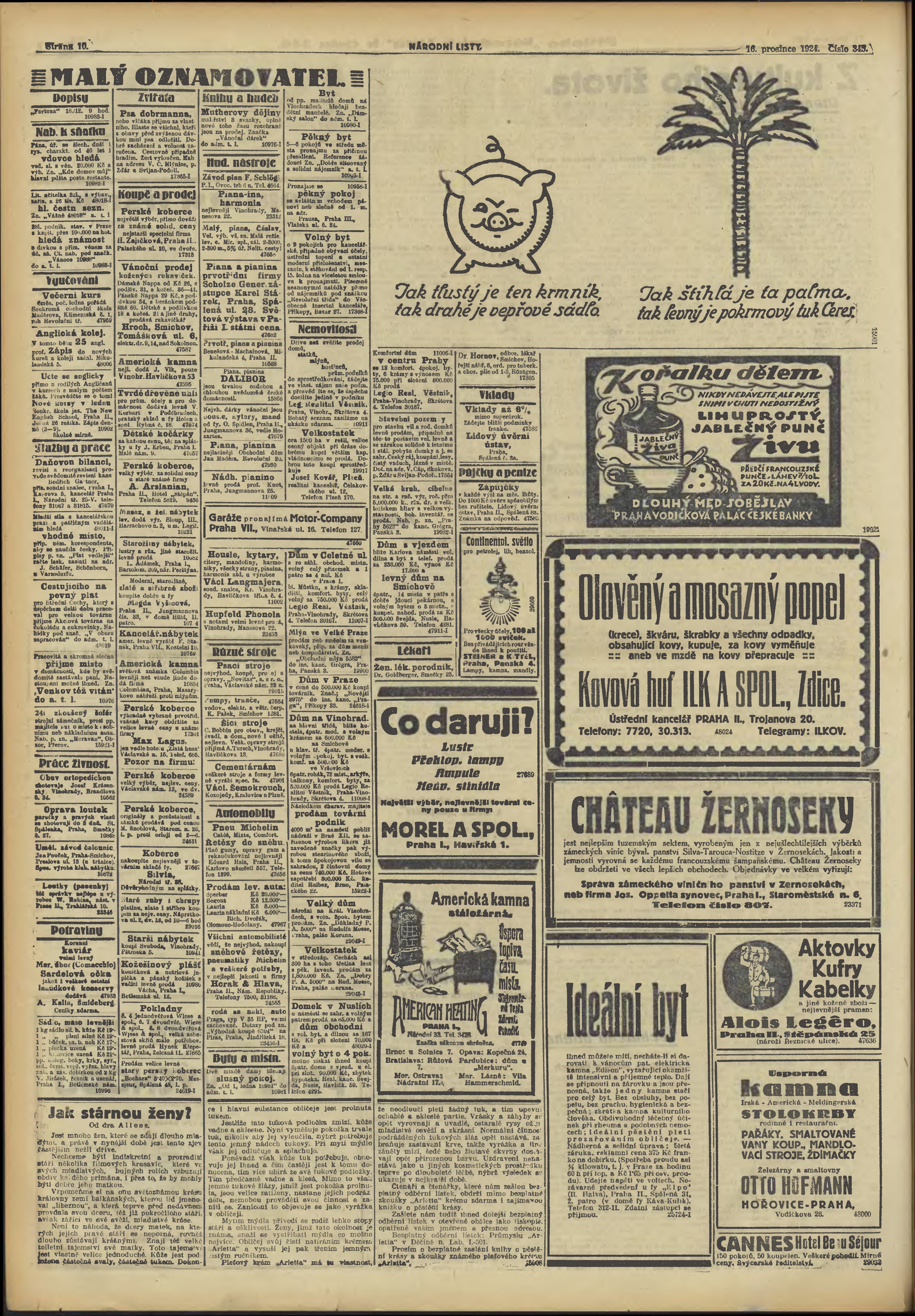 * Datum vydání výtisku: 17.12.1924 Číslo výtisku: 346 Typ výtisku: příloha Poznámky k výtisku: č. 346 (345) chybný údaj v číslování;