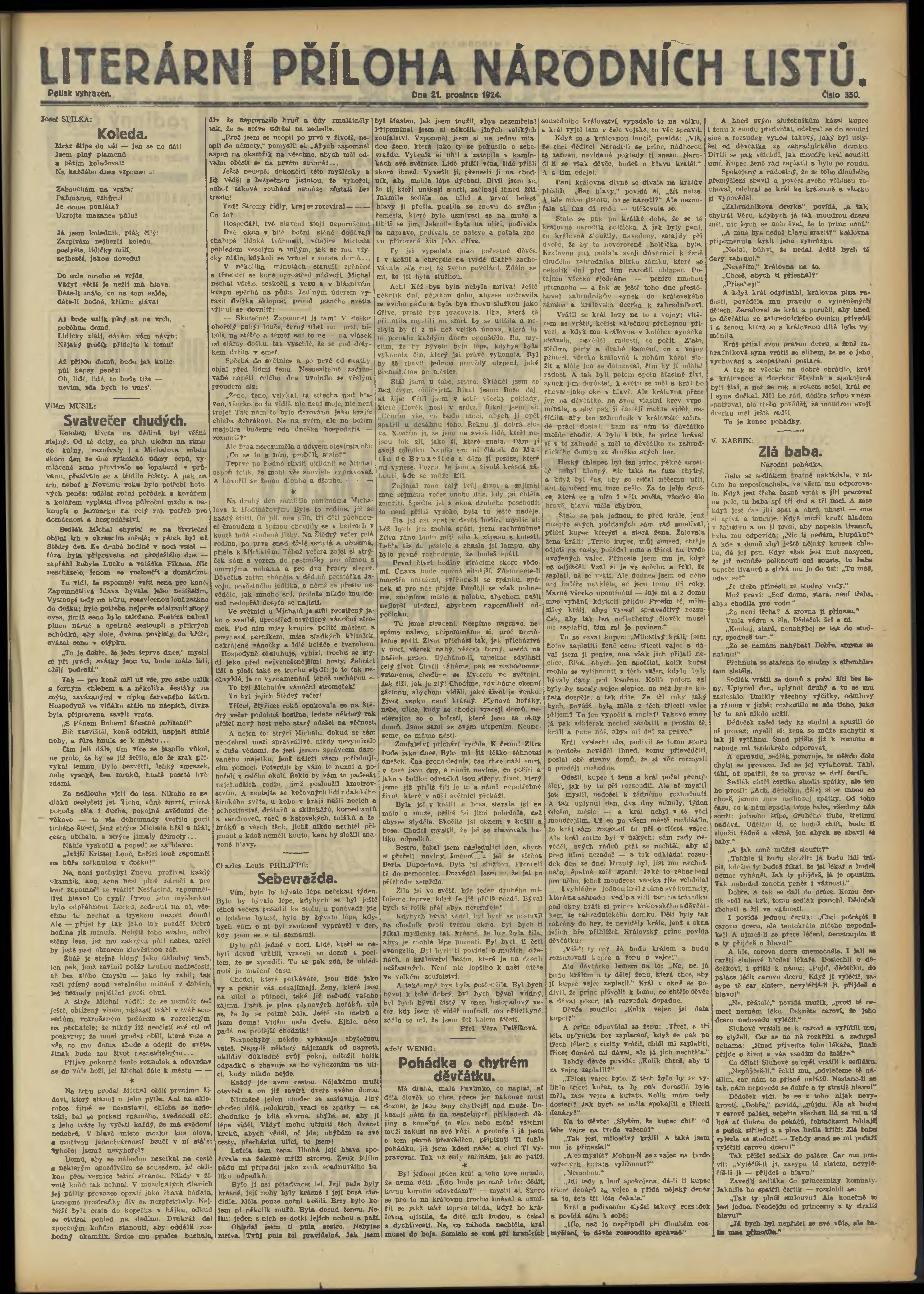 * Datum vydání výtisku: 21.12.1924 Číslo výtisku: 350 Typ výtisku: příloha