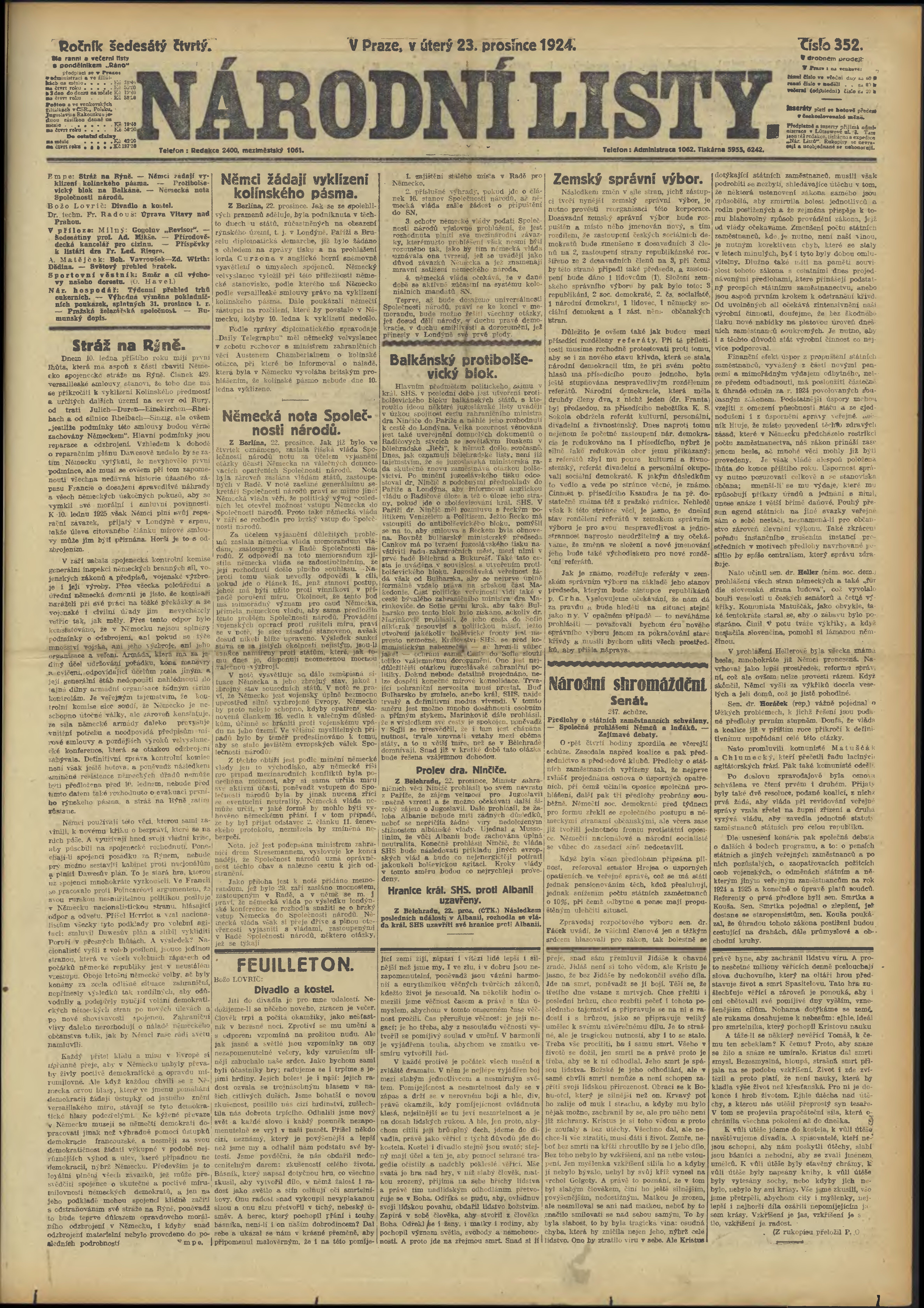 * Datum vydání výtisku: 23.12.1924 Číslo výtisku: 352