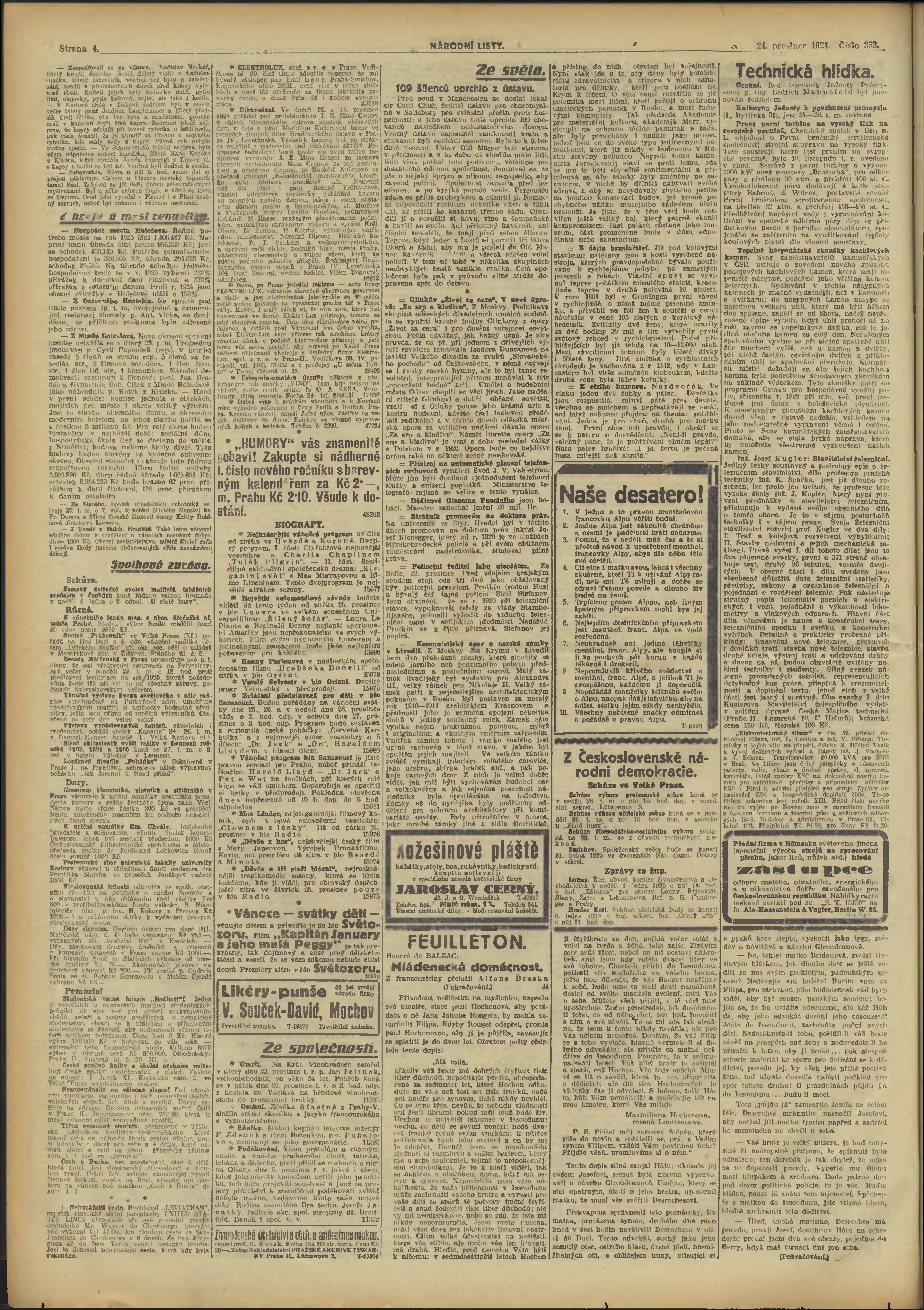 * Datum vydání výtisku: 24.12.1924 Číslo výtisku: 353