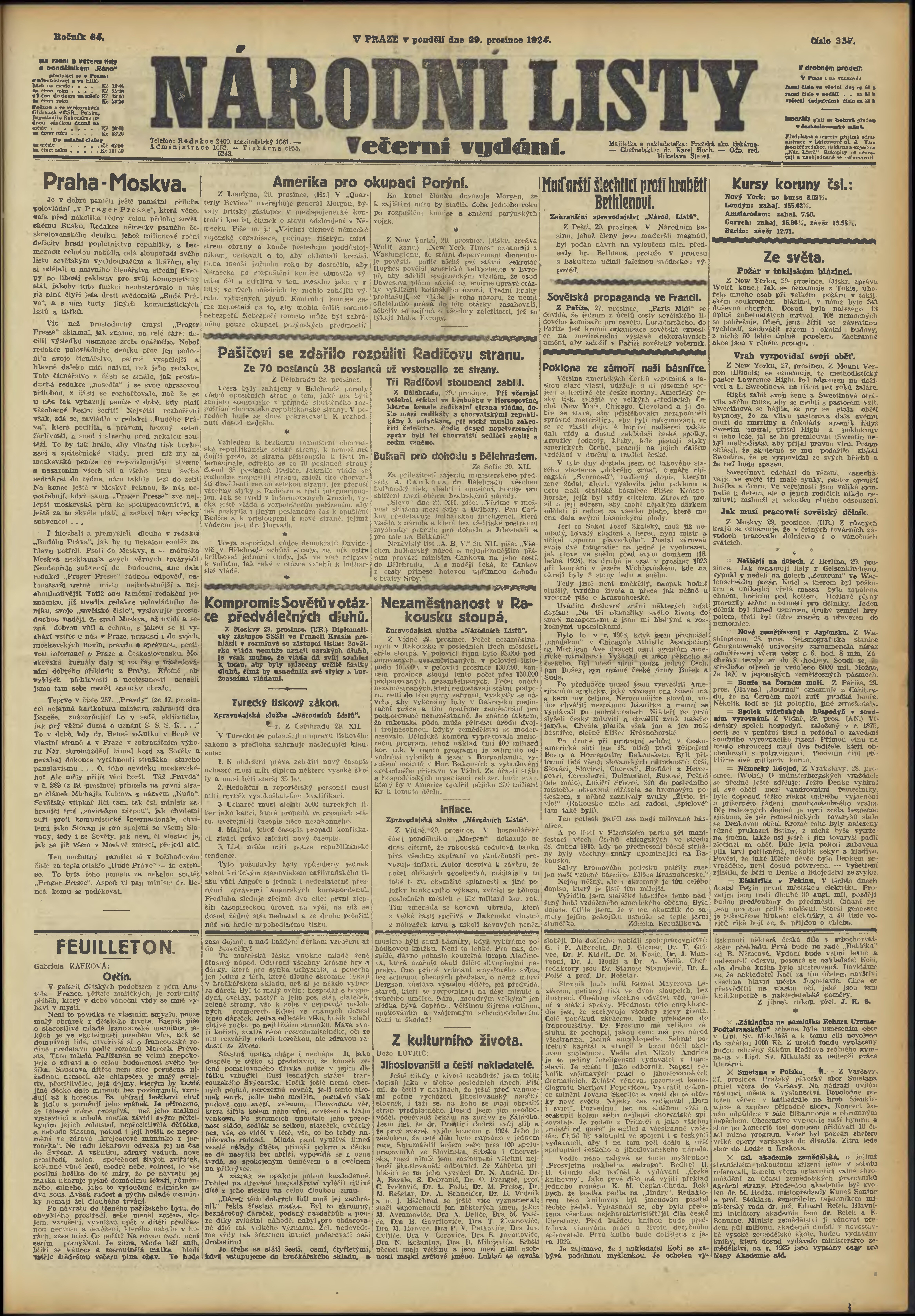 * Datum vydání výtisku: 29.12.1924 Číslo výtisku: 357 Poznámky k výtisku: večerní vydání;
