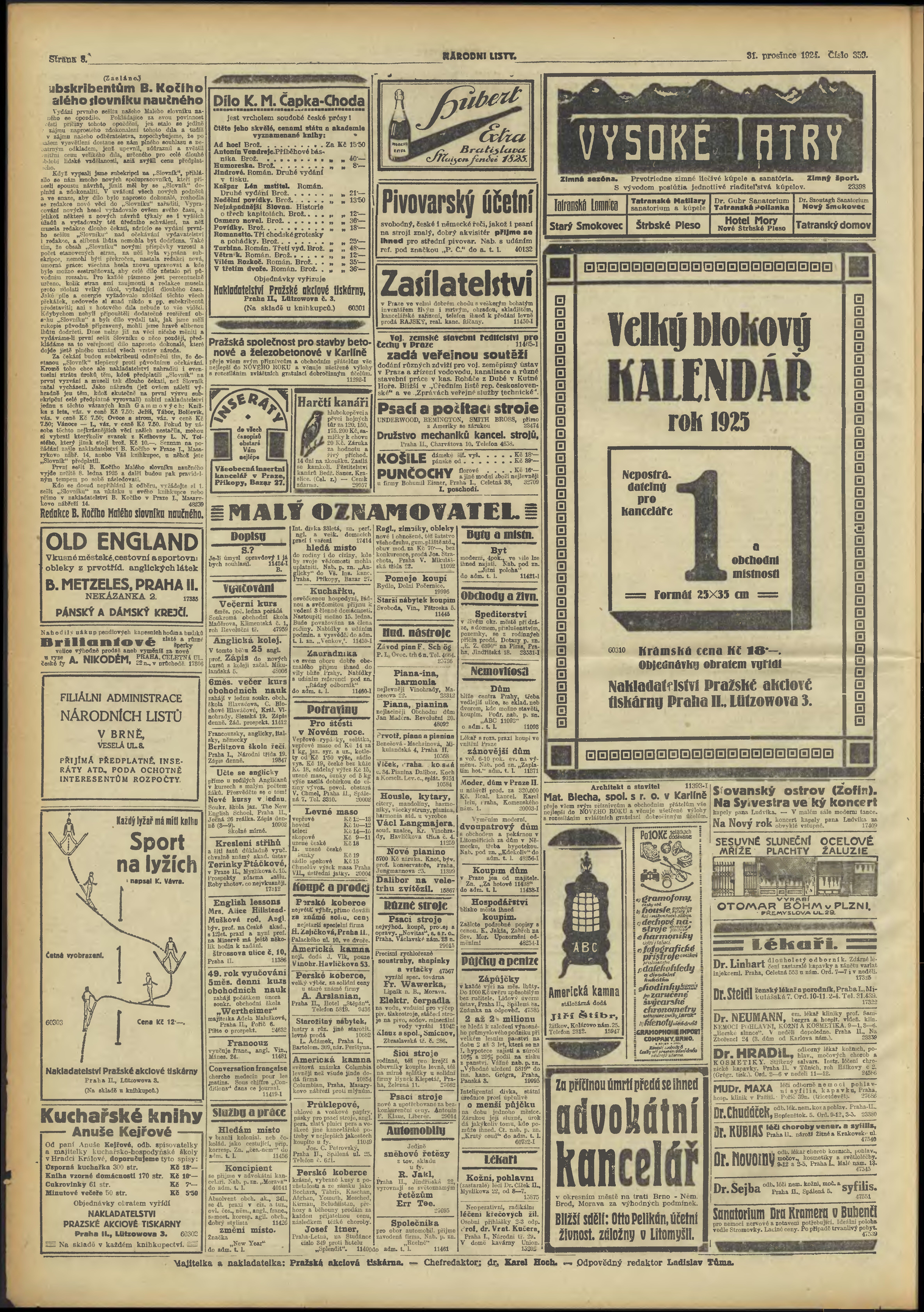 * Datum vydání výtisku: 31.12.1924 Číslo výtisku: 359