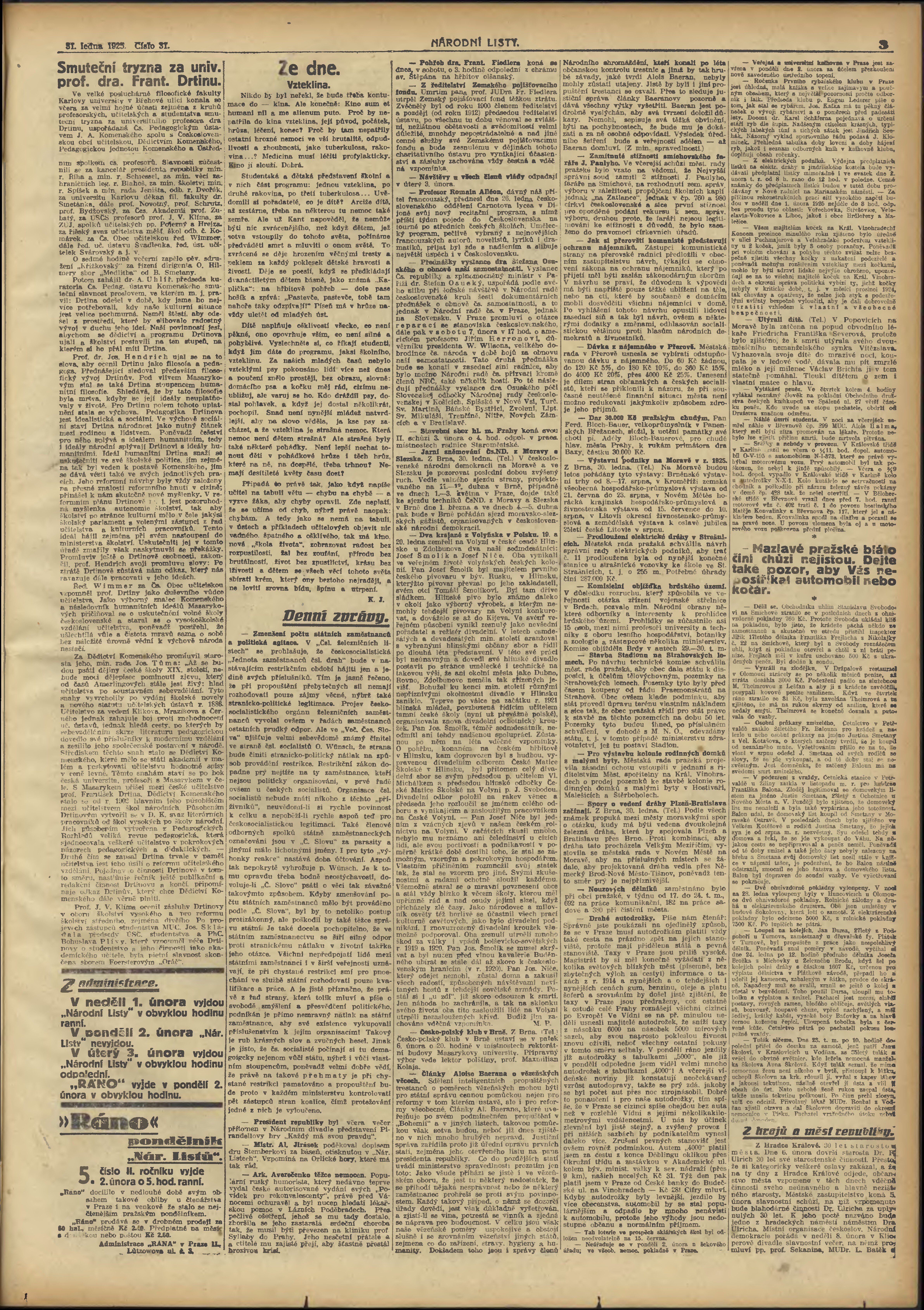 * Datum vydání výtisku: 31.1.1925 Číslo výtisku: 31