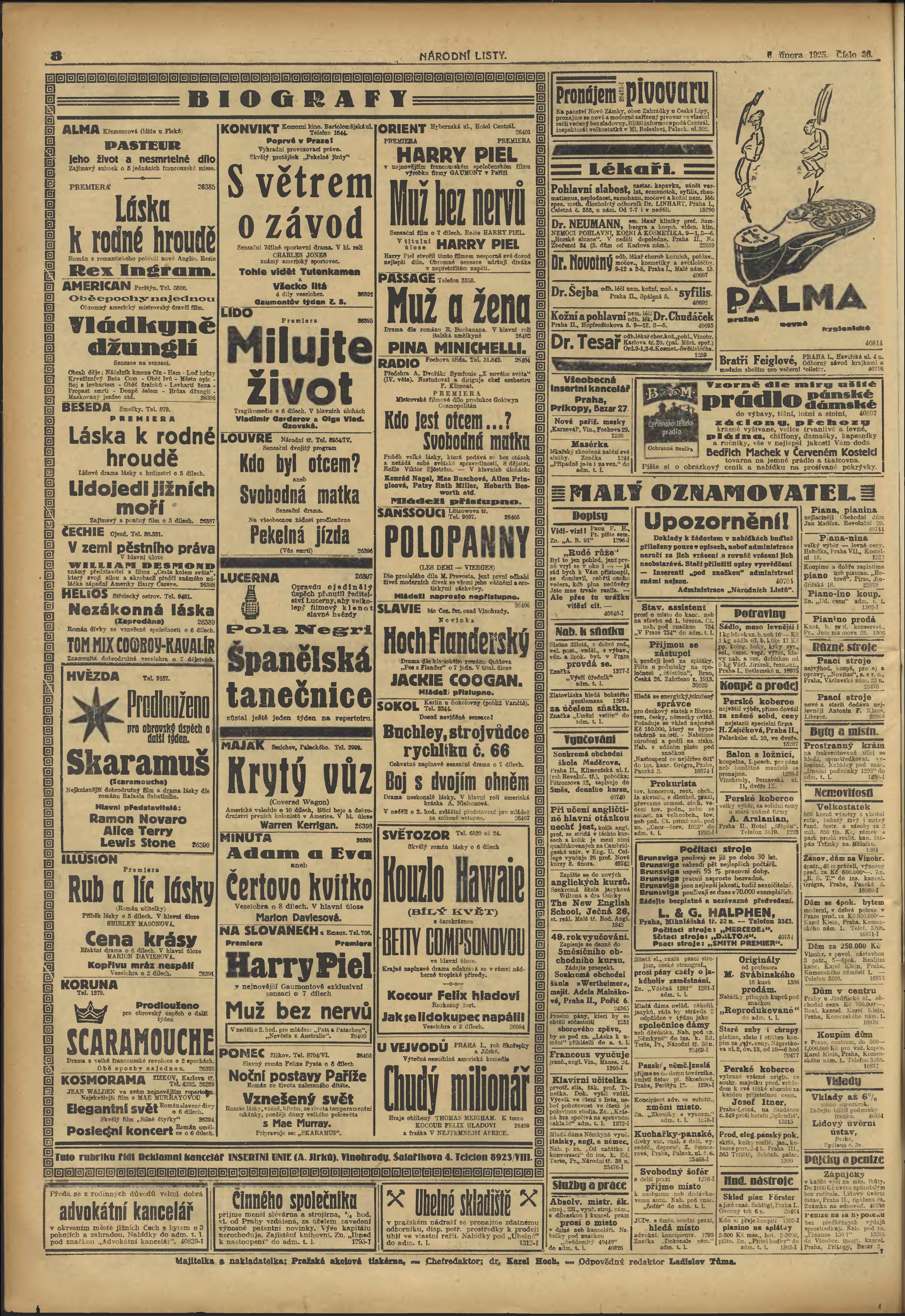 * Datum vydání výtisku: 6.2.1925 Číslo výtisku: 36