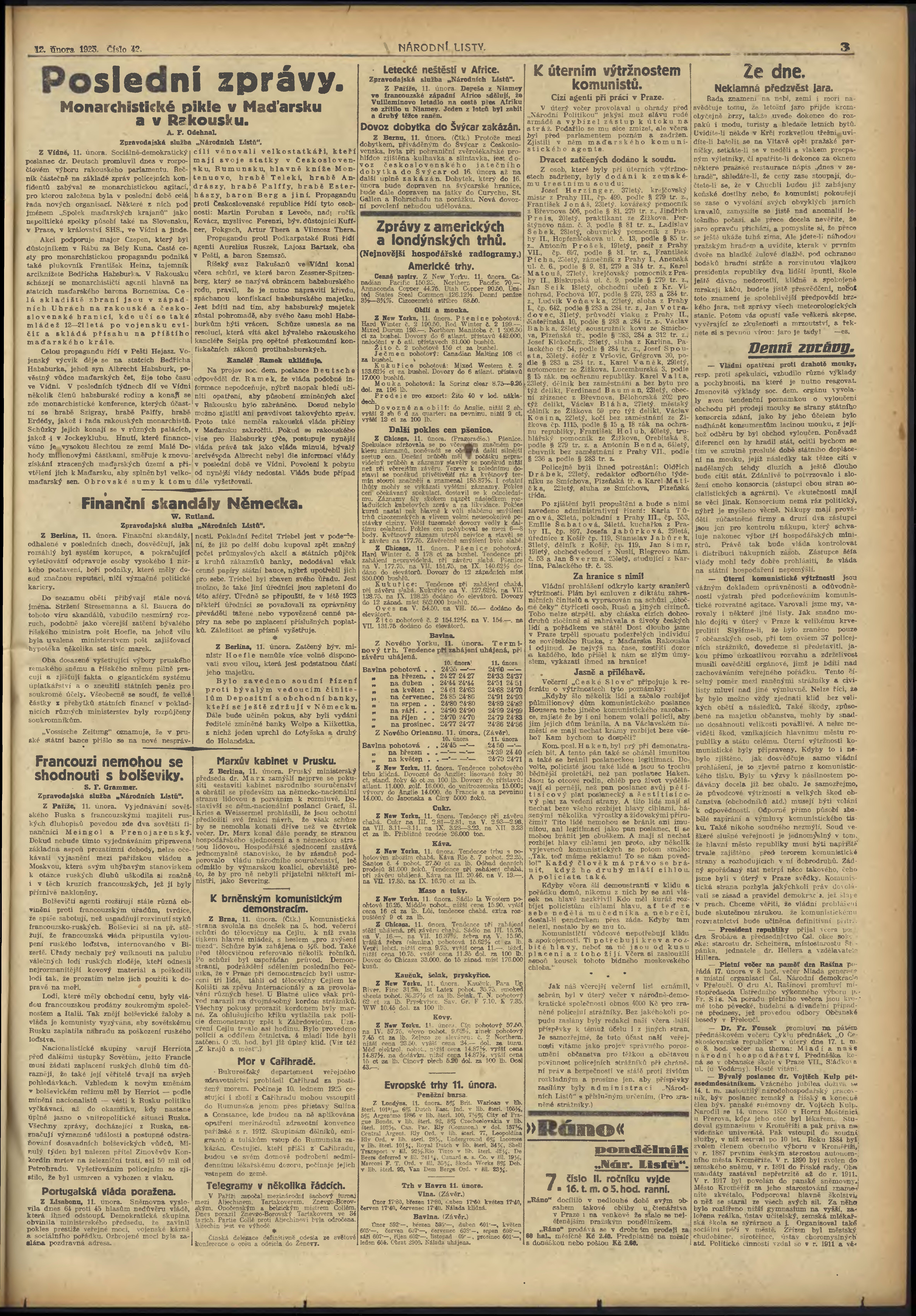 * Datum vydání výtisku: 12.2.1925 Číslo výtisku: 42
