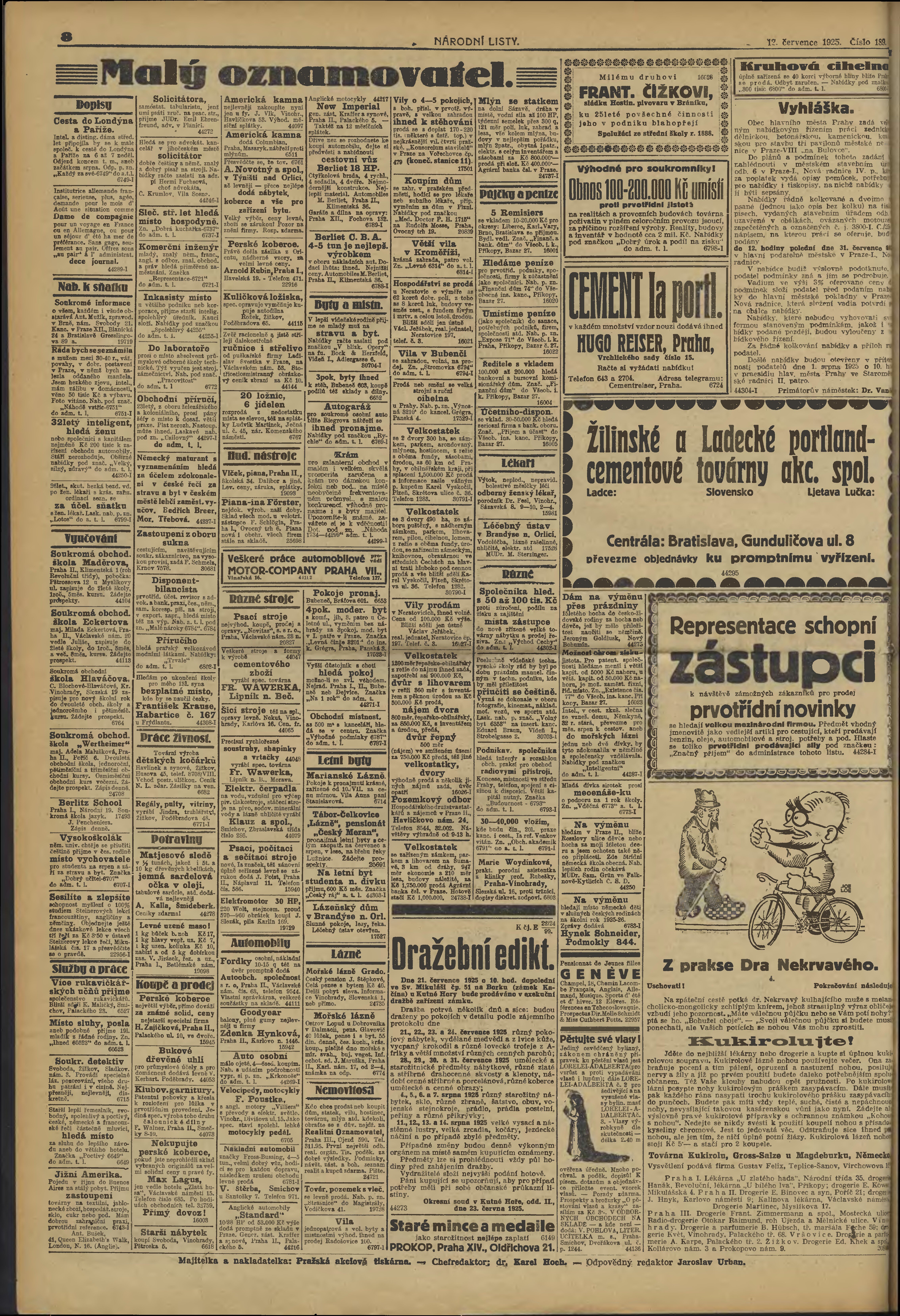 * Datum vydání výtisku: 12.7.1925 Číslo výtisku: 189