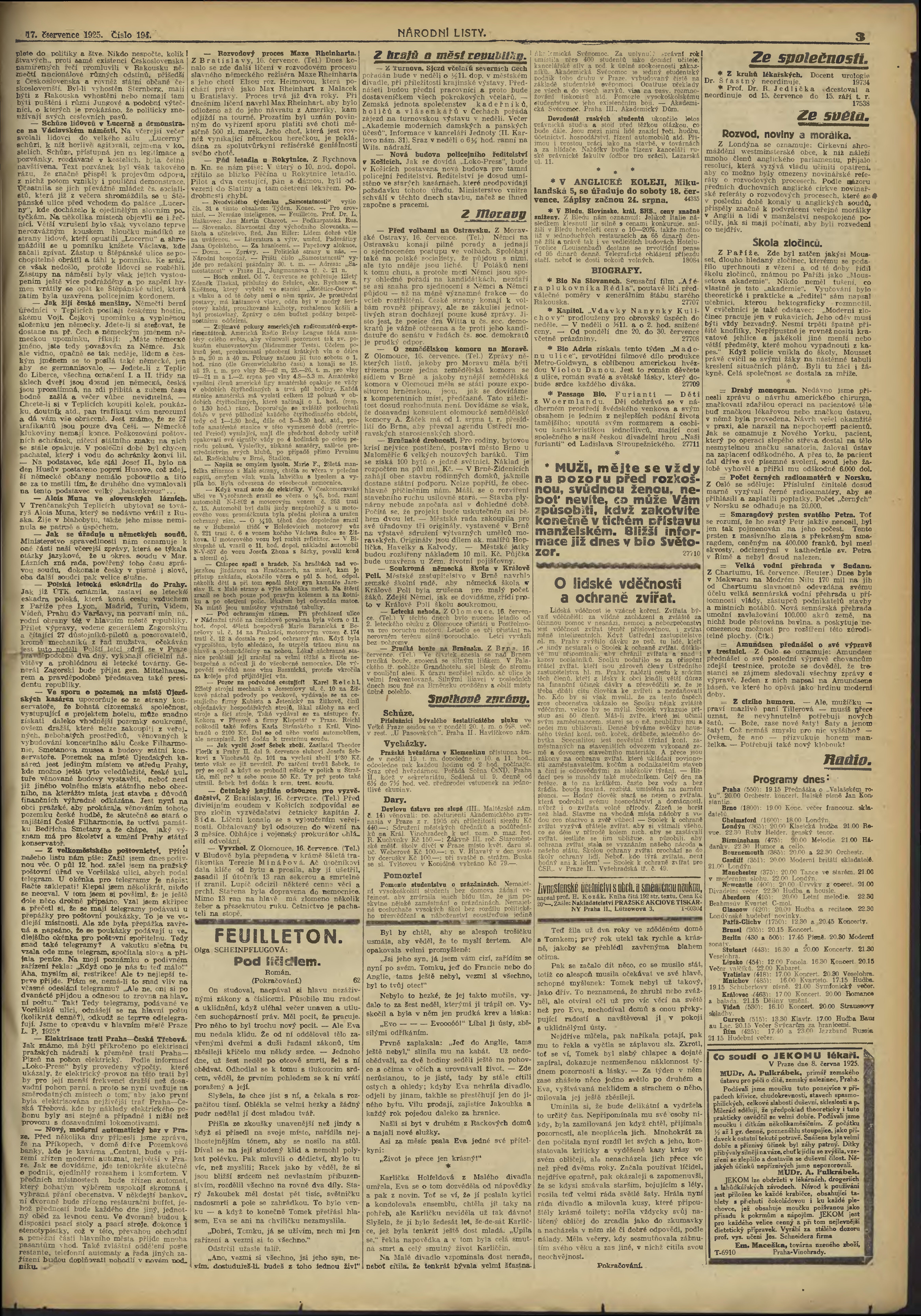 * Datum vydání výtisku: 17.7.1925 Číslo výtisku: 194