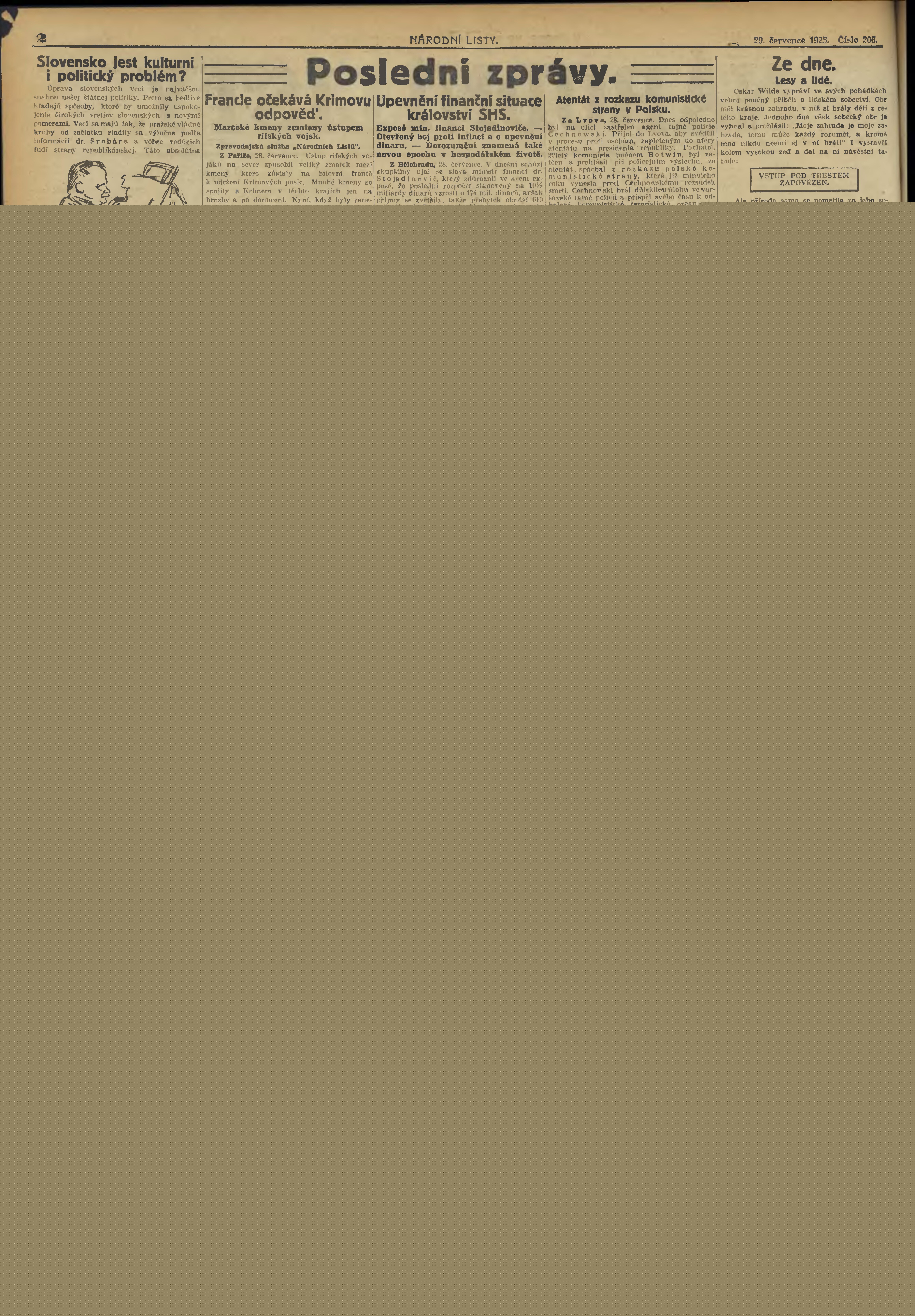 * Datum vydání výtisku: 29.7.1925 Číslo výtisku: 206