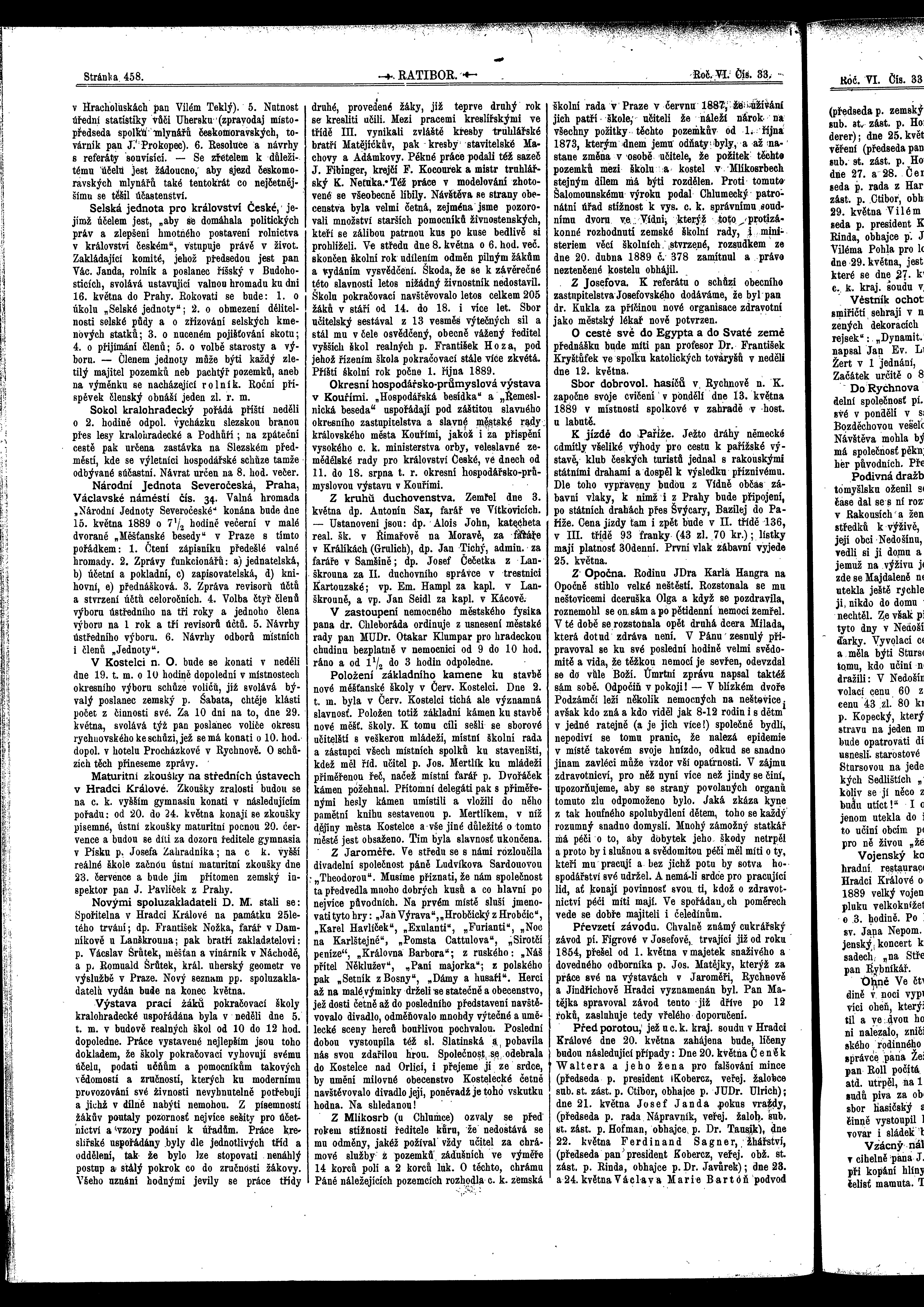 * Datum vydání výtisku: 11.5.1889 Číslo výtisku: 33 Poznámky k výtisku: ranní vydání