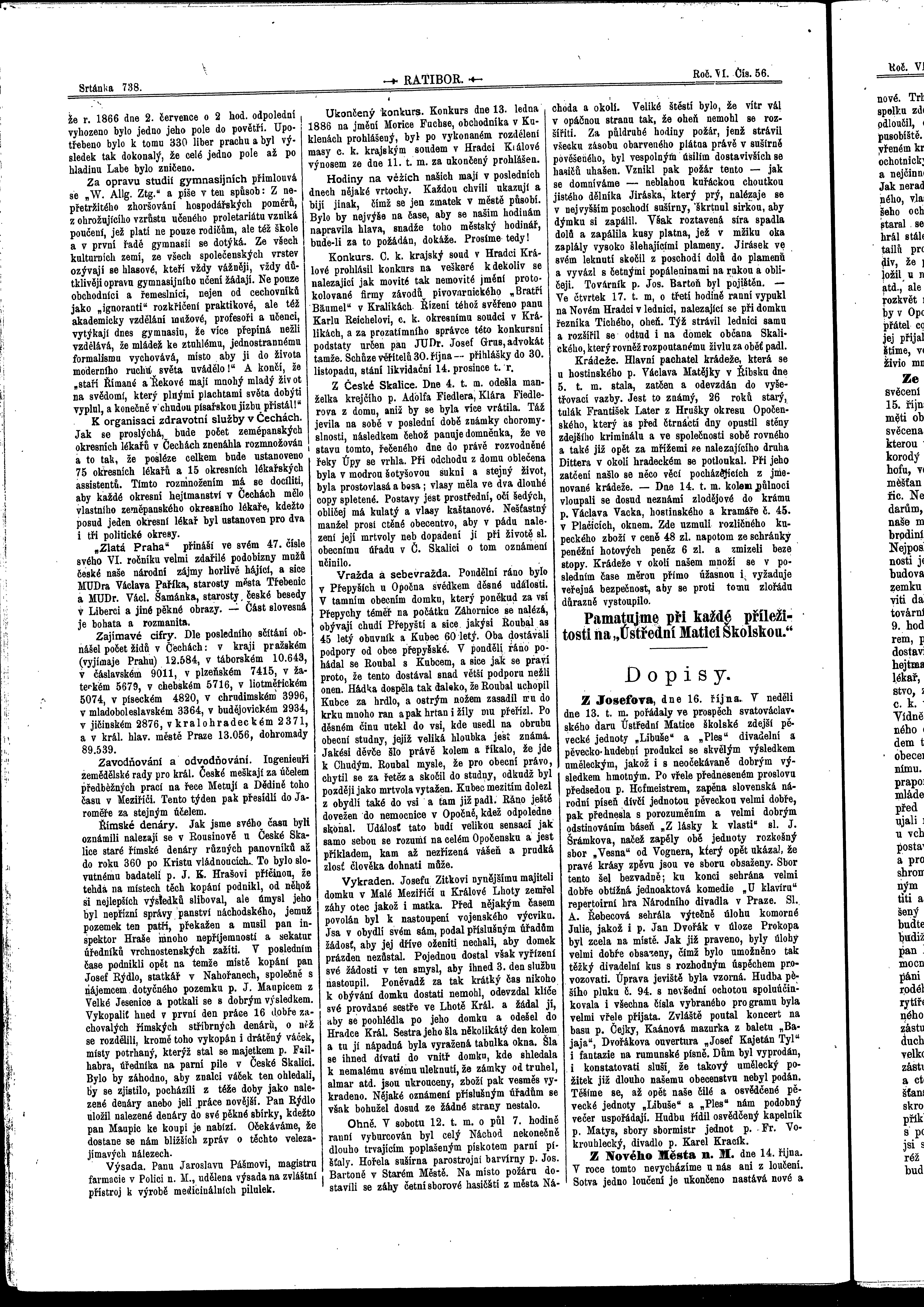 * Datum vydání výtisku: 19.10.1889 Číslo výtisku: 56 Poznámky k výtisku: ranní vydání