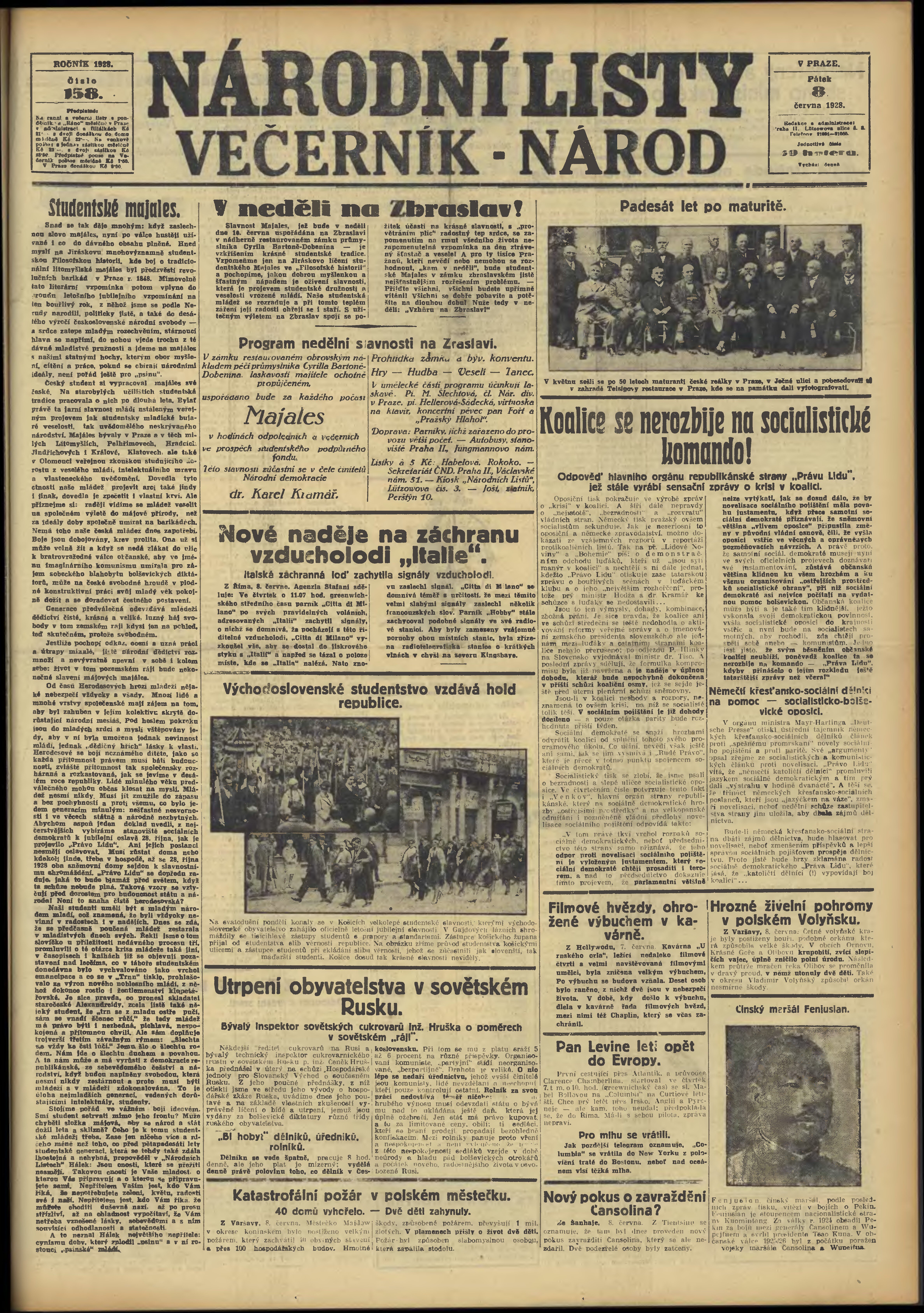 * Datum vydání výtisku: 8.6.1928 Číslo výtisku: 158 Poznámky k výtisku: večerní vydání;