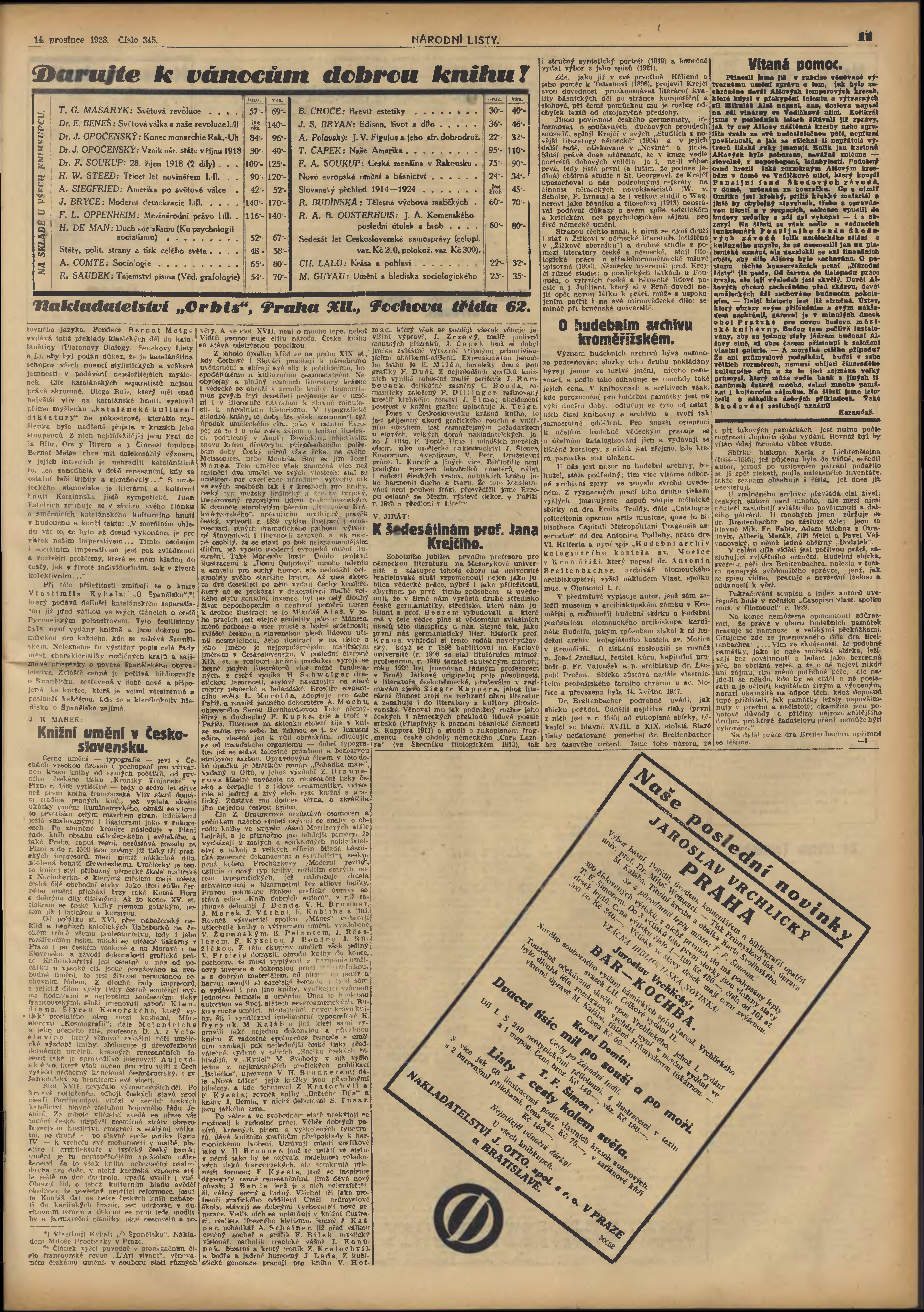 * Datum vydání výtisku: 14.12.1928 Číslo výtisku: 345 Typ výtisku: příloha
