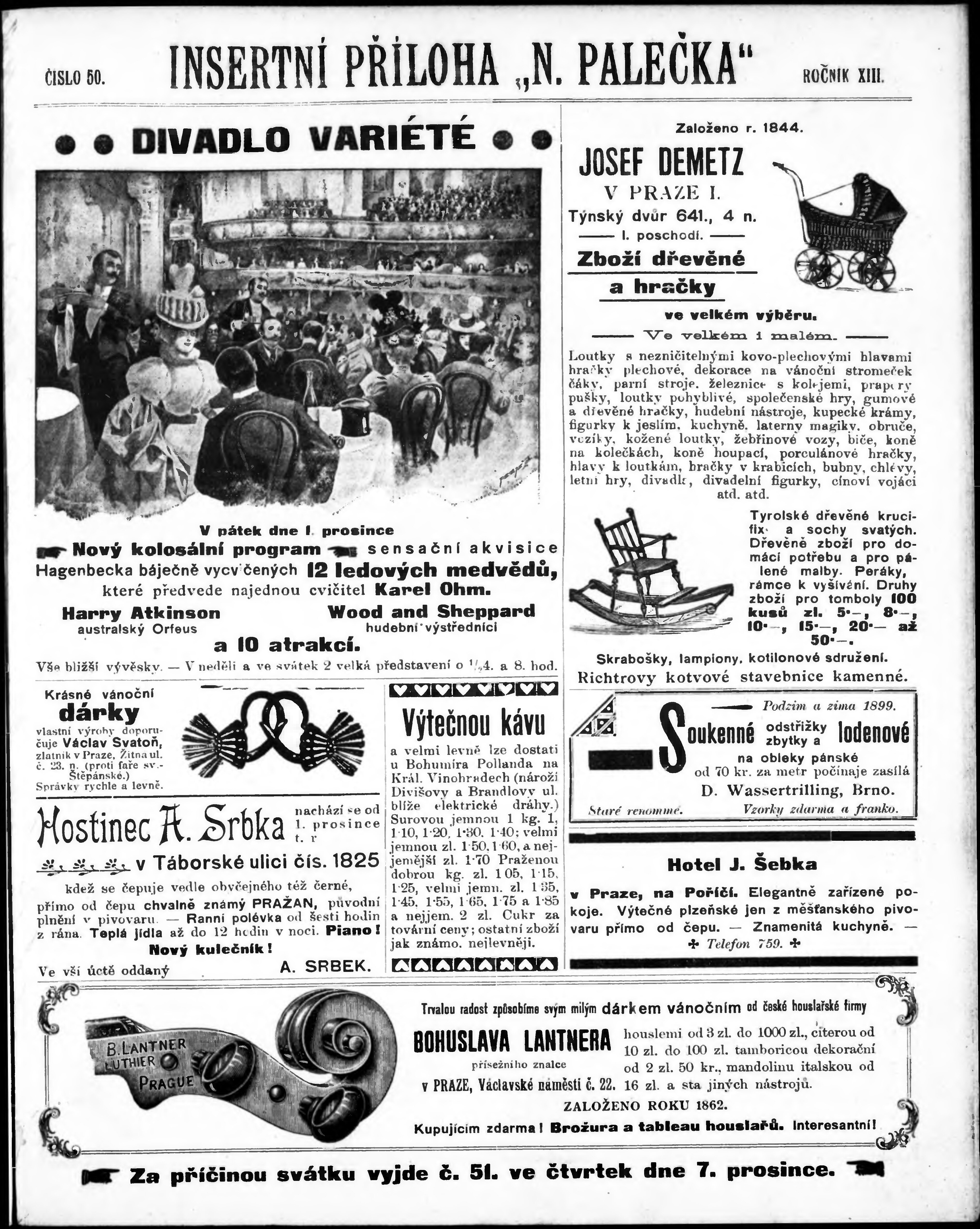 * Datum vydání výtisku: 1.12.1899 Číslo výtisku: 50 Typ výtisku: příloha Poznámky k výtisku: inzertní příloha;