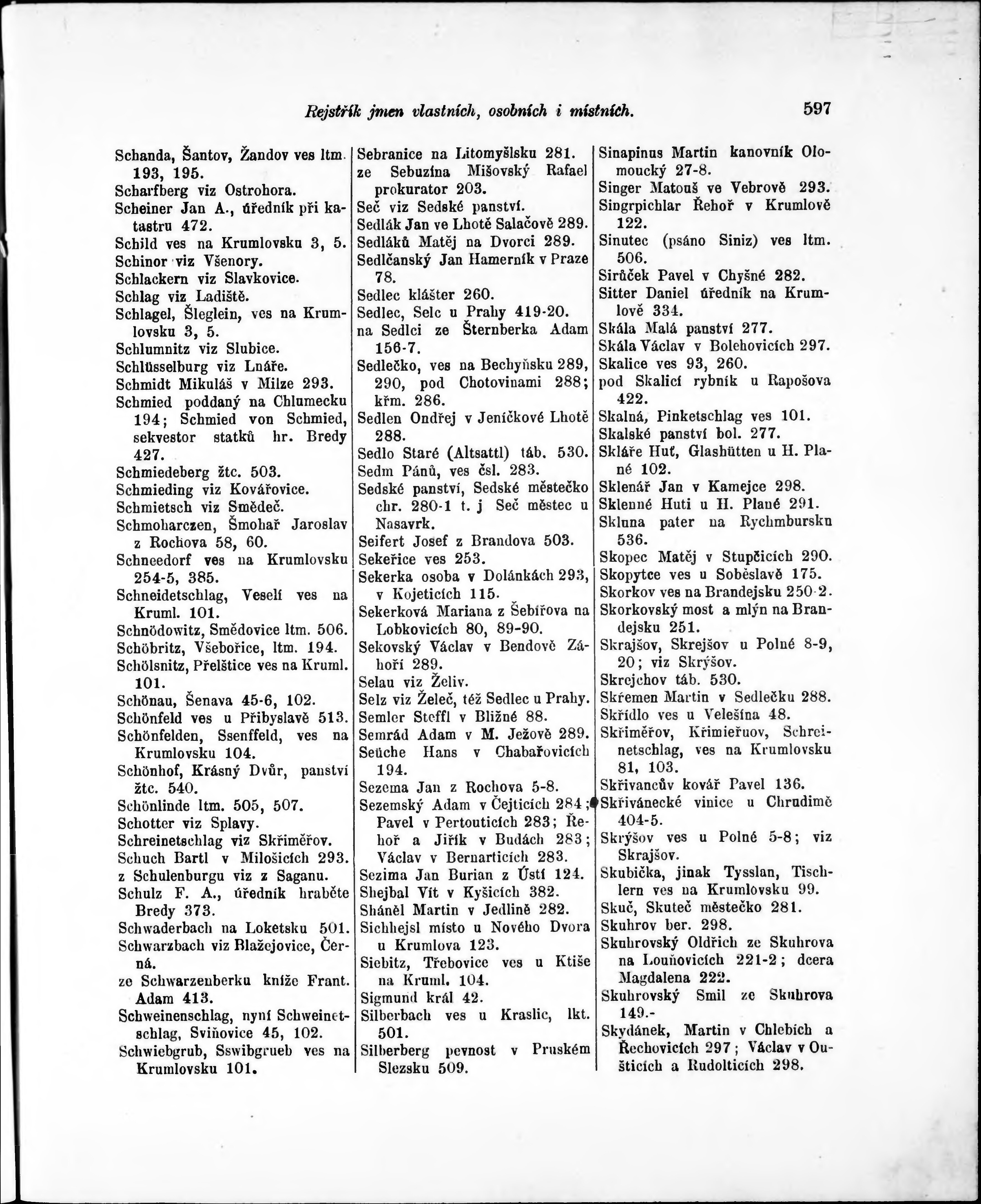 * Číslo stránky: 597 Typ stránky: rejstřík