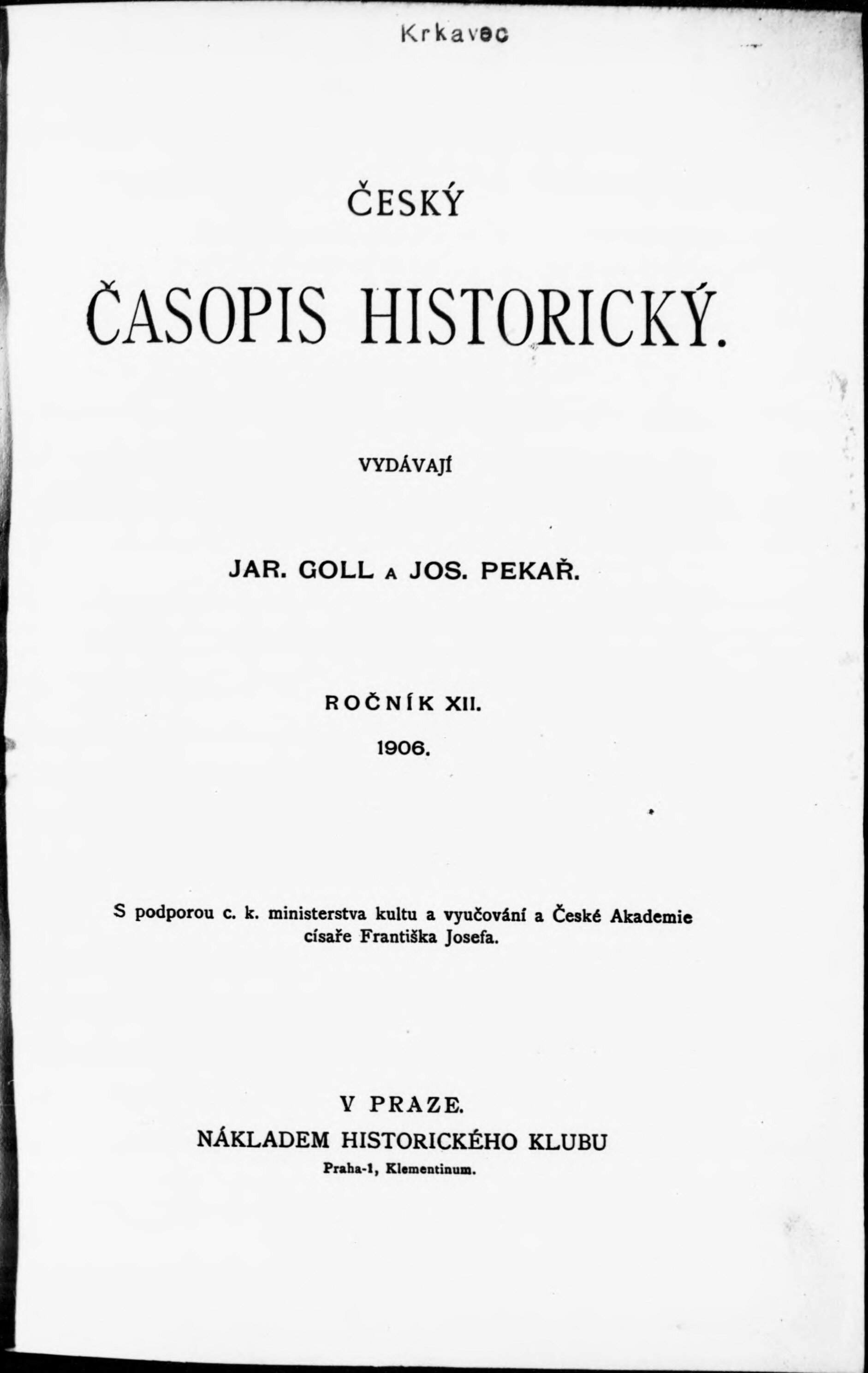 * Datum vydání ročníku: 1906 Číslo ročníku: 12