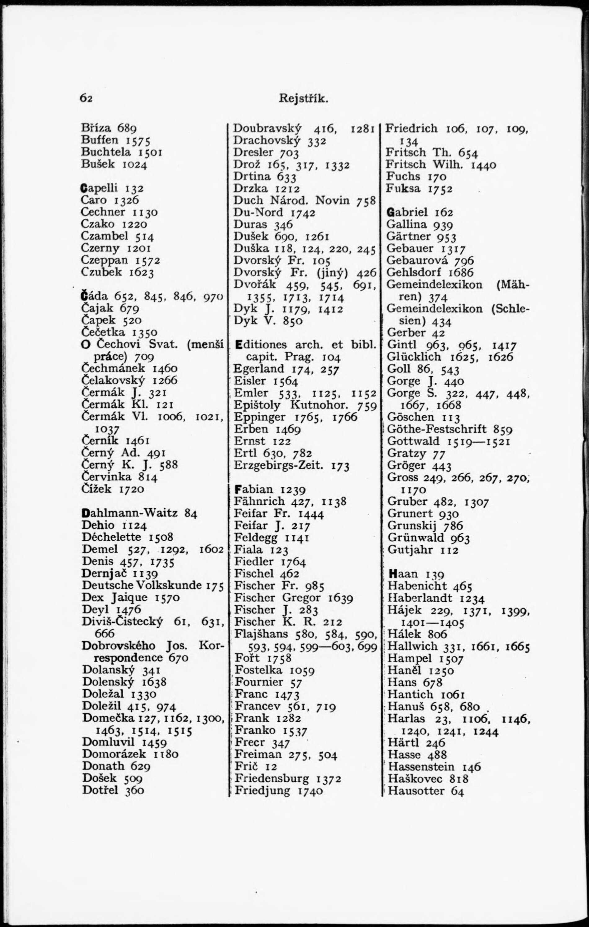 * Číslo stránky: 62 Typ stránky: rejstřík