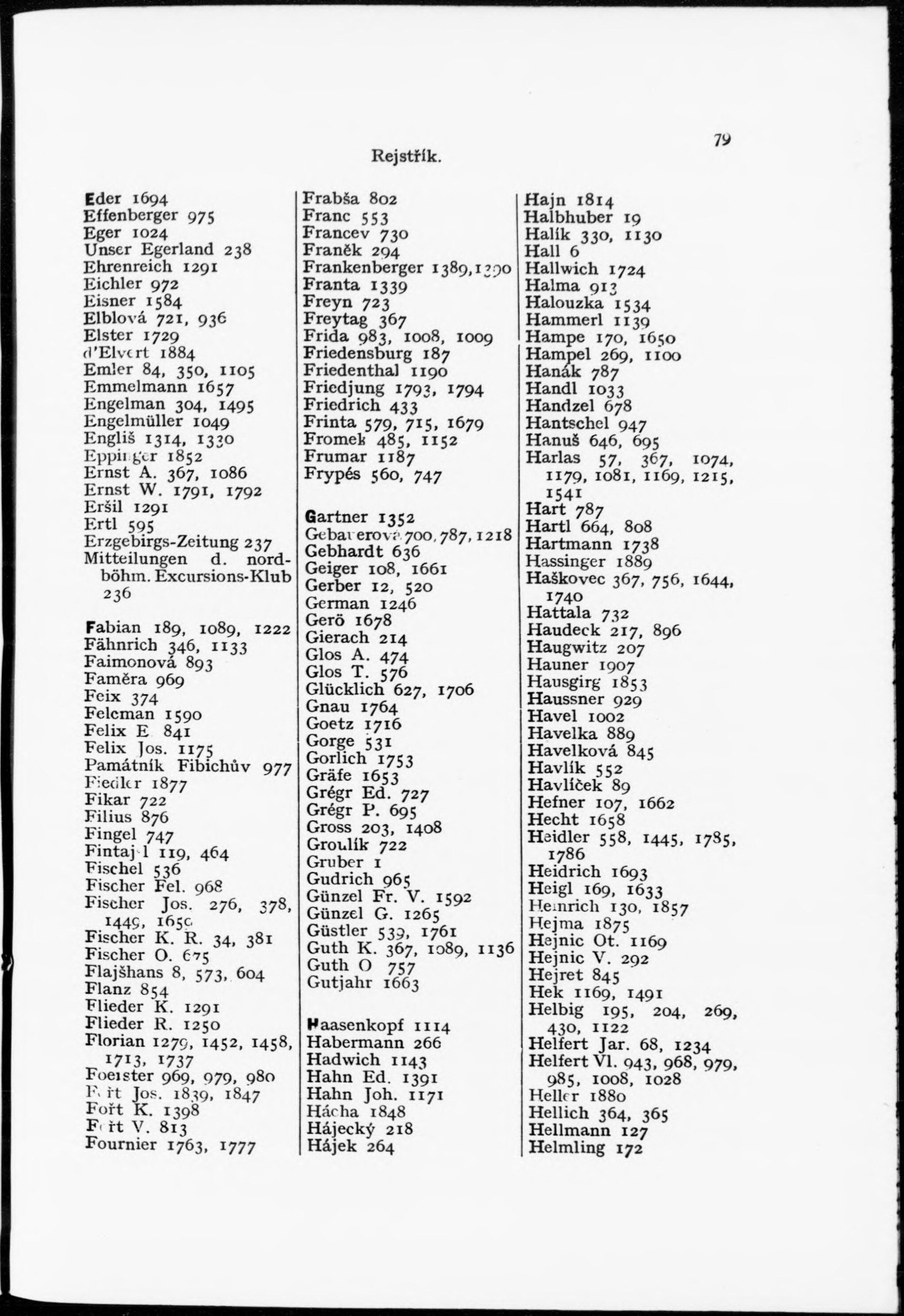* Číslo stránky: 79 Typ stránky: rejstřík