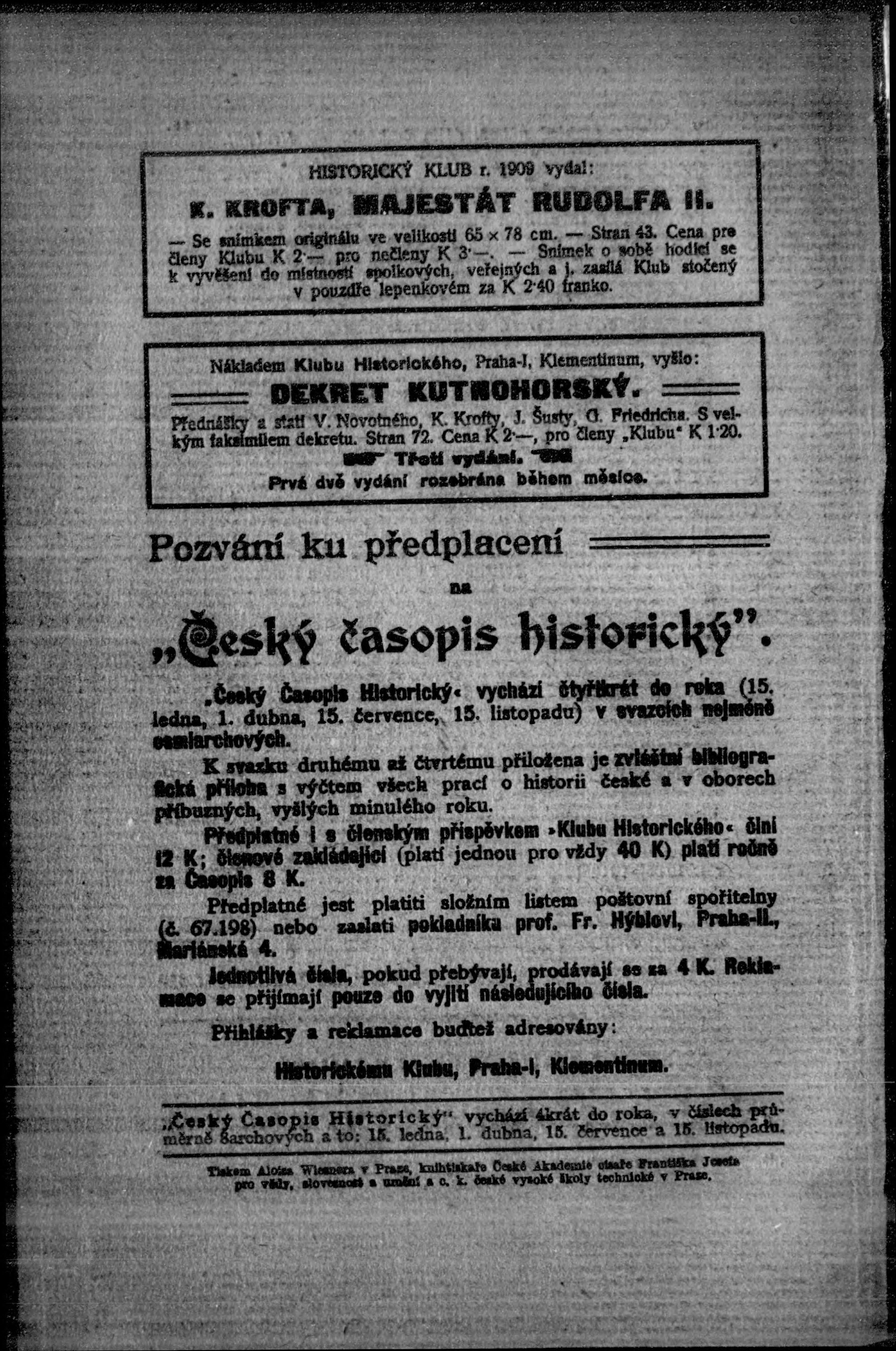 * Datum vydání výtisku: 15.1.1913 Číslo výtisku: 1 Poznámky k výtisku: s. (32a) poškozená předloha;