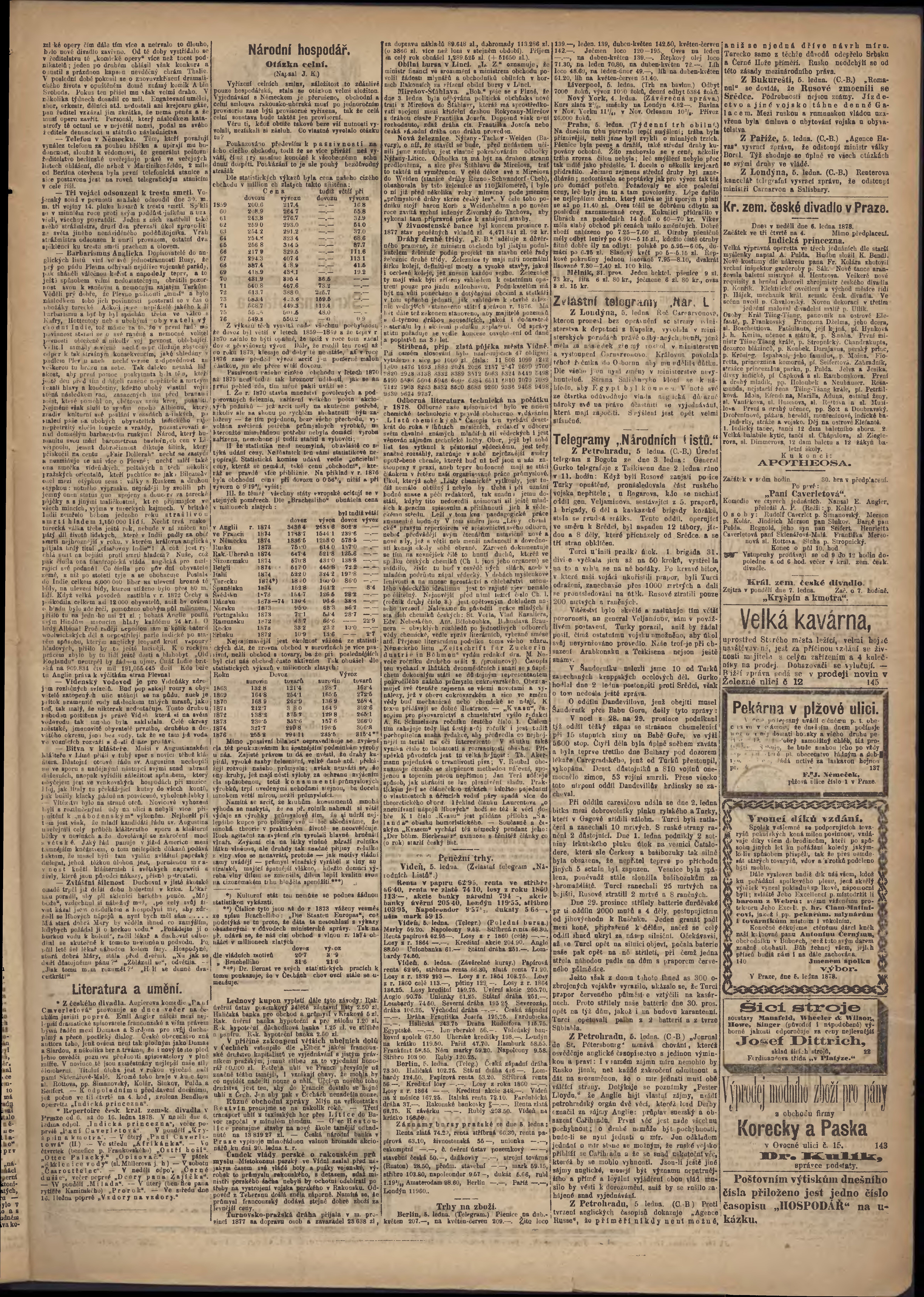 * Datum vydání výtisku: 6.1.1878 Číslo výtisku: 5
