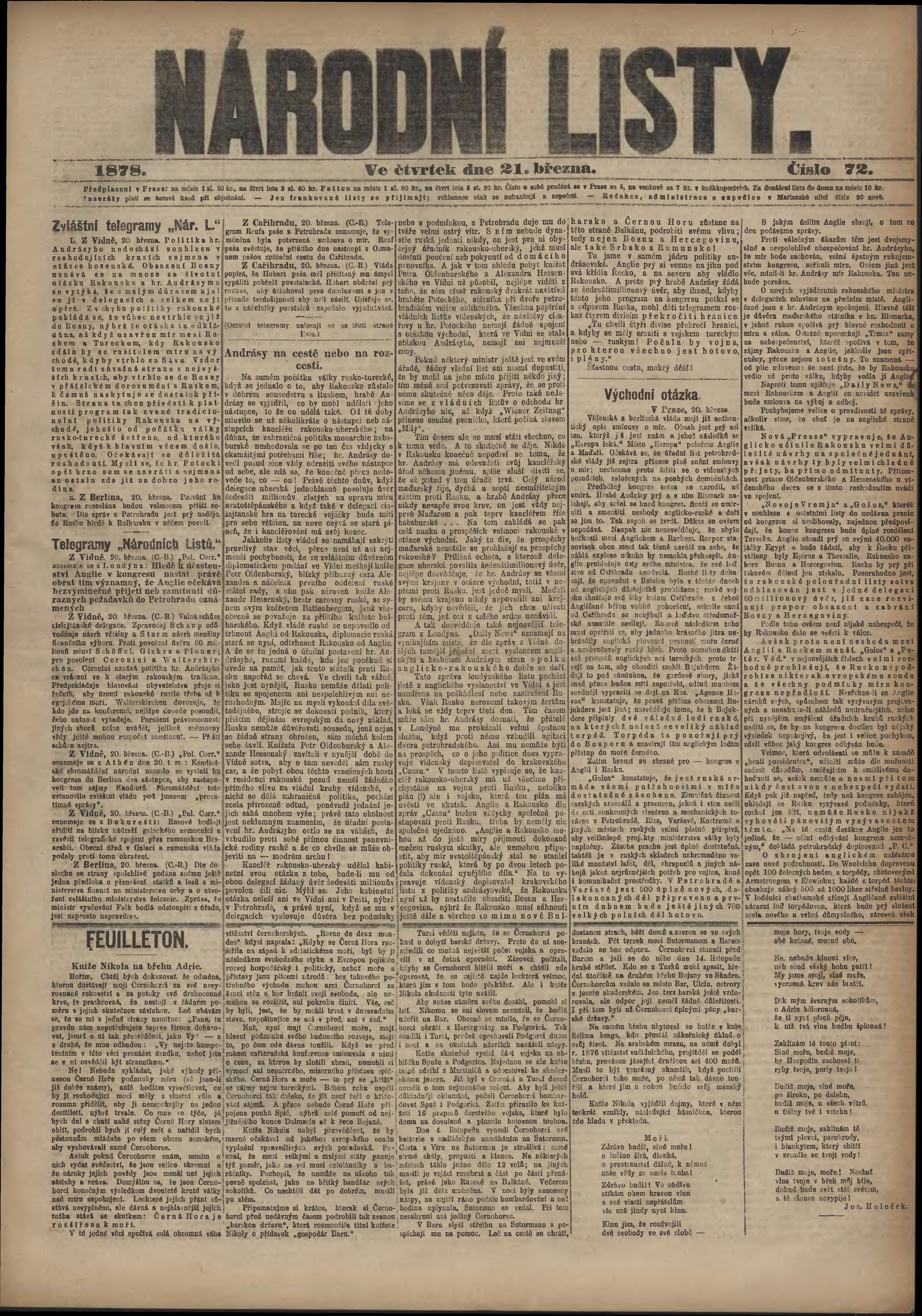 * Datum vydání výtisku: 21.3.1878 Číslo výtisku: 72