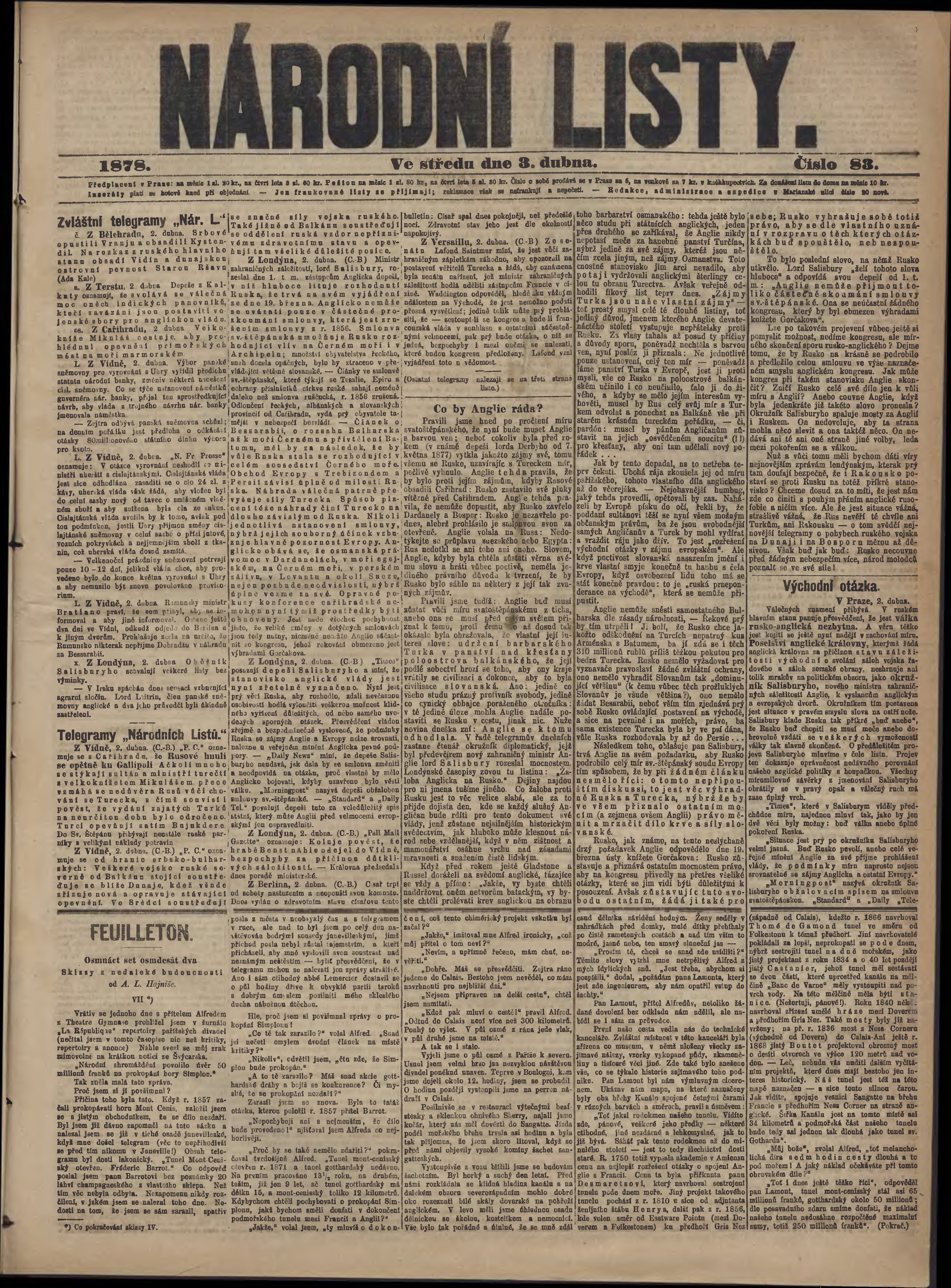 * Datum vydání výtisku: 3.4.1878 Číslo výtisku: 83