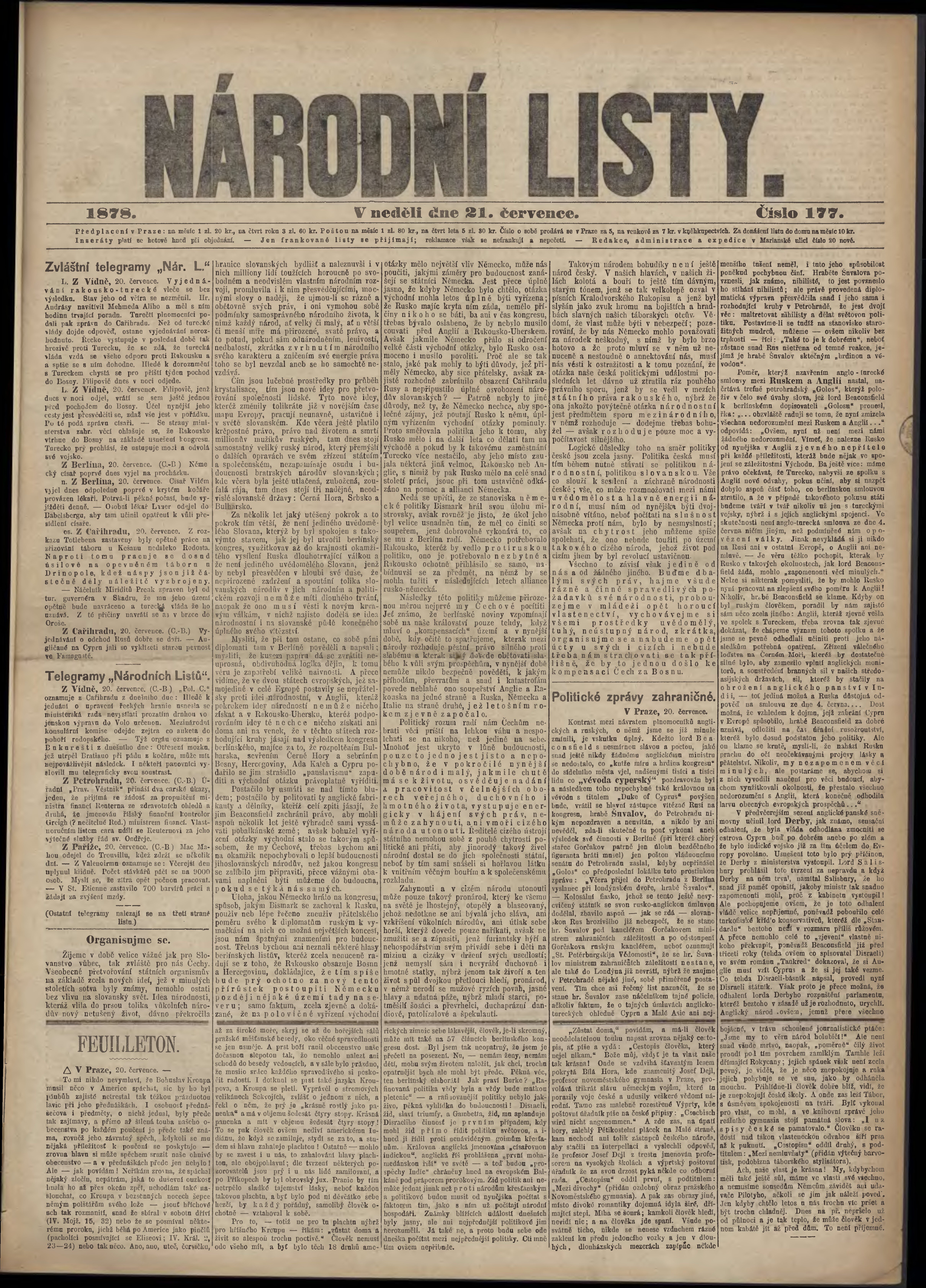 * Datum vydání výtisku: 21.7.1878 Číslo výtisku: 177