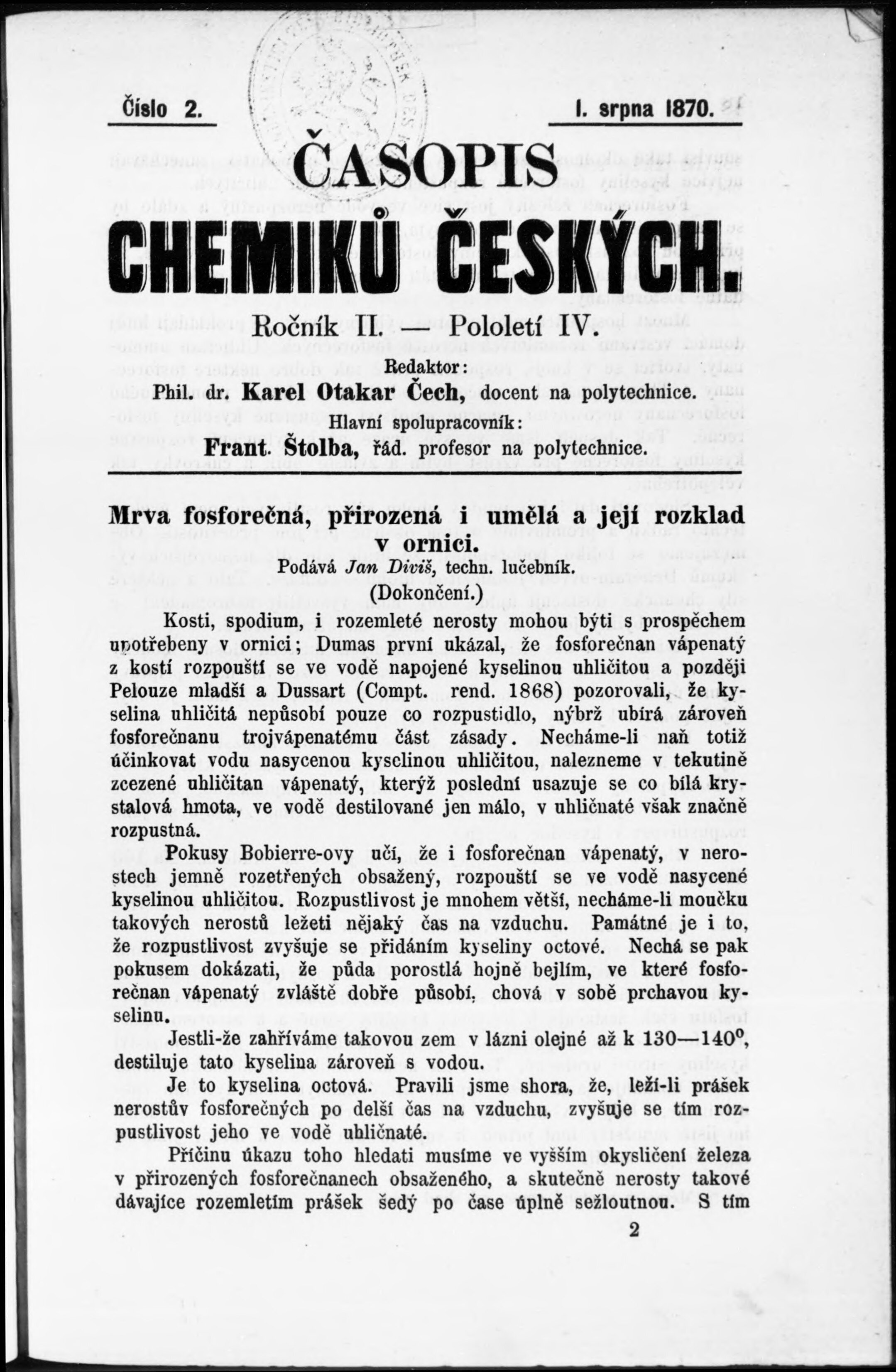 * Datum vydání ročníku: 1870 Číslo ročníku: 2