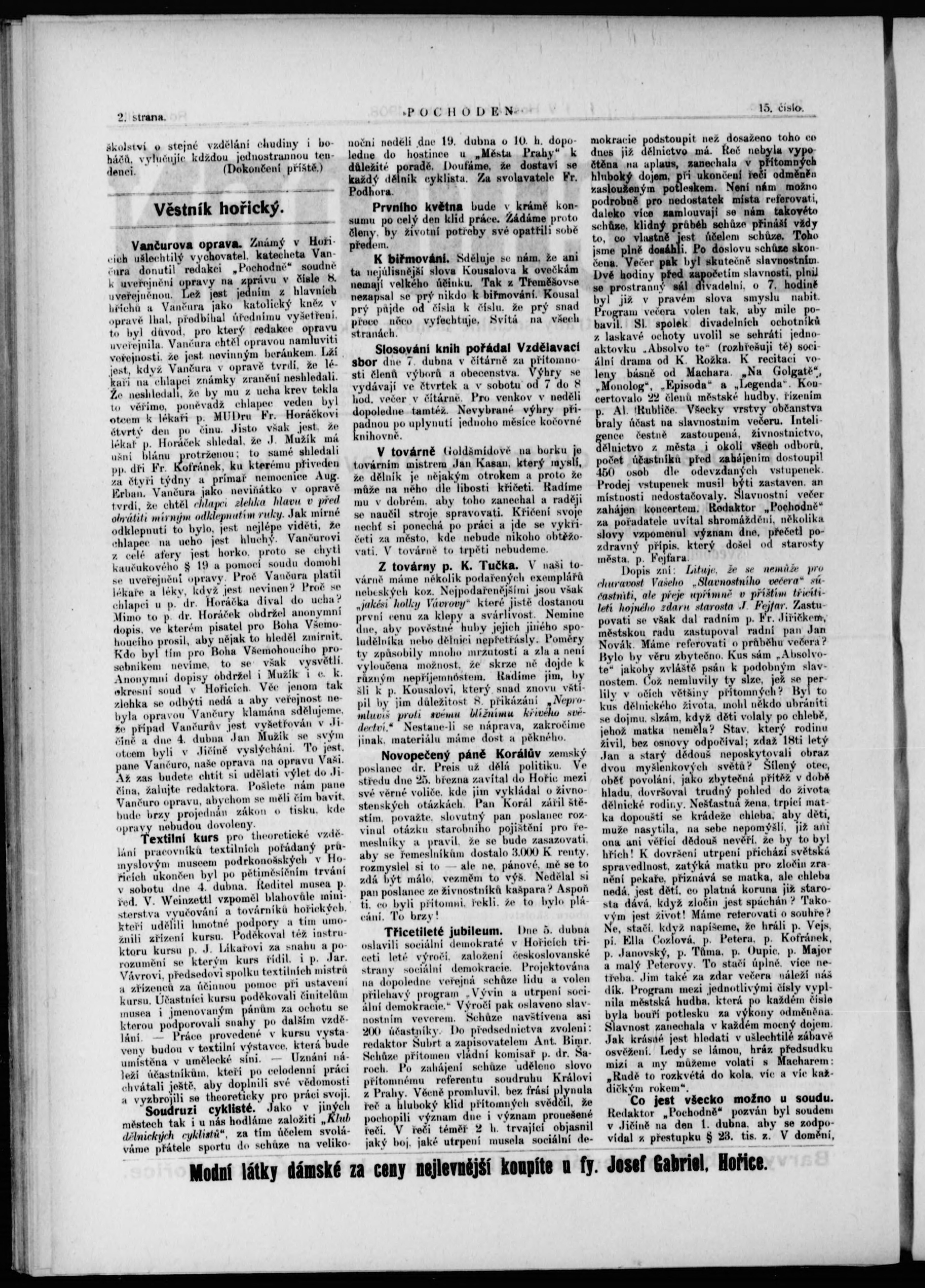 * Datum vydání výtisku: 10.4.1908 Číslo výtisku: 15