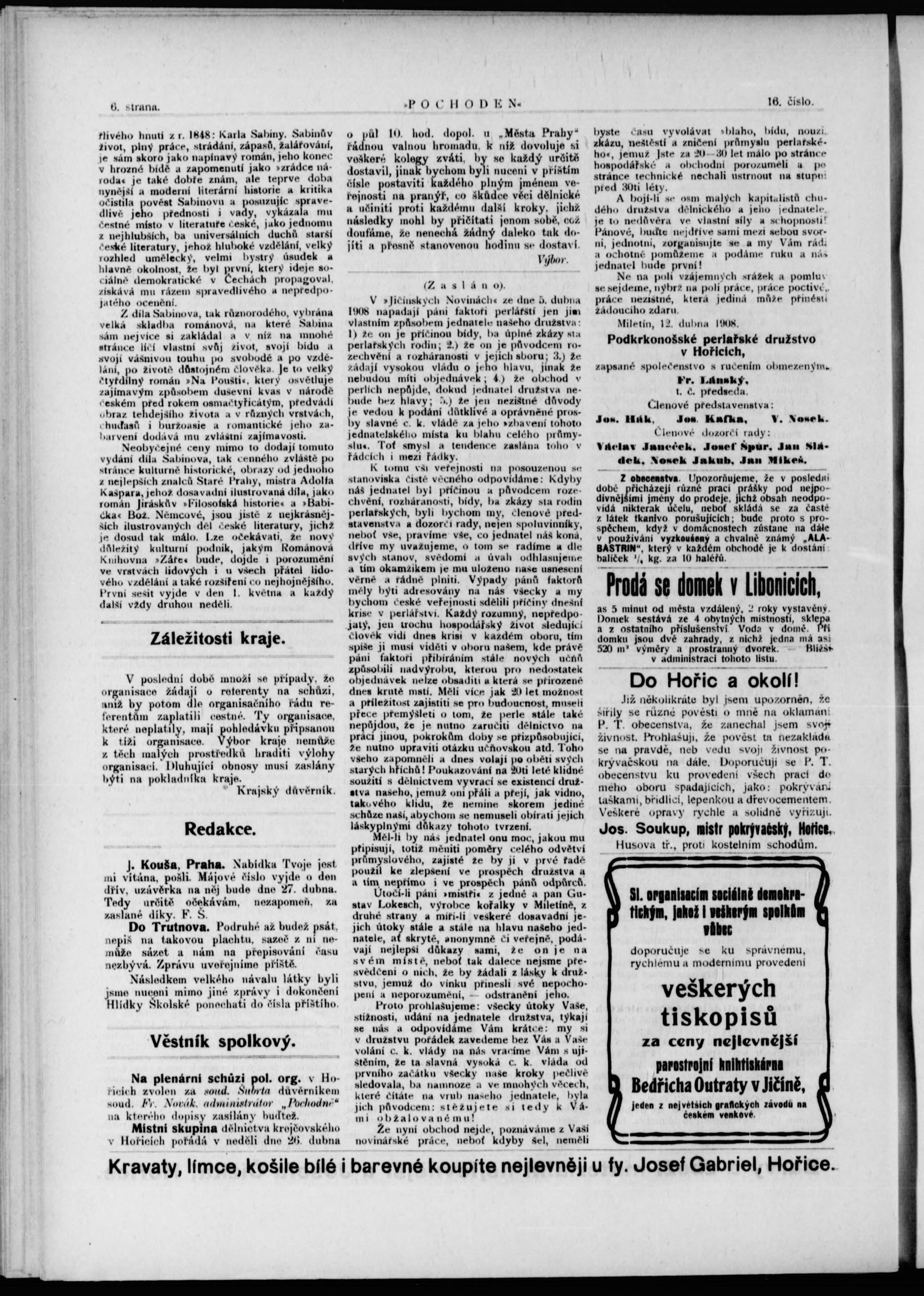 * Datum vydání výtisku: 17.4.1908 Číslo výtisku: 16