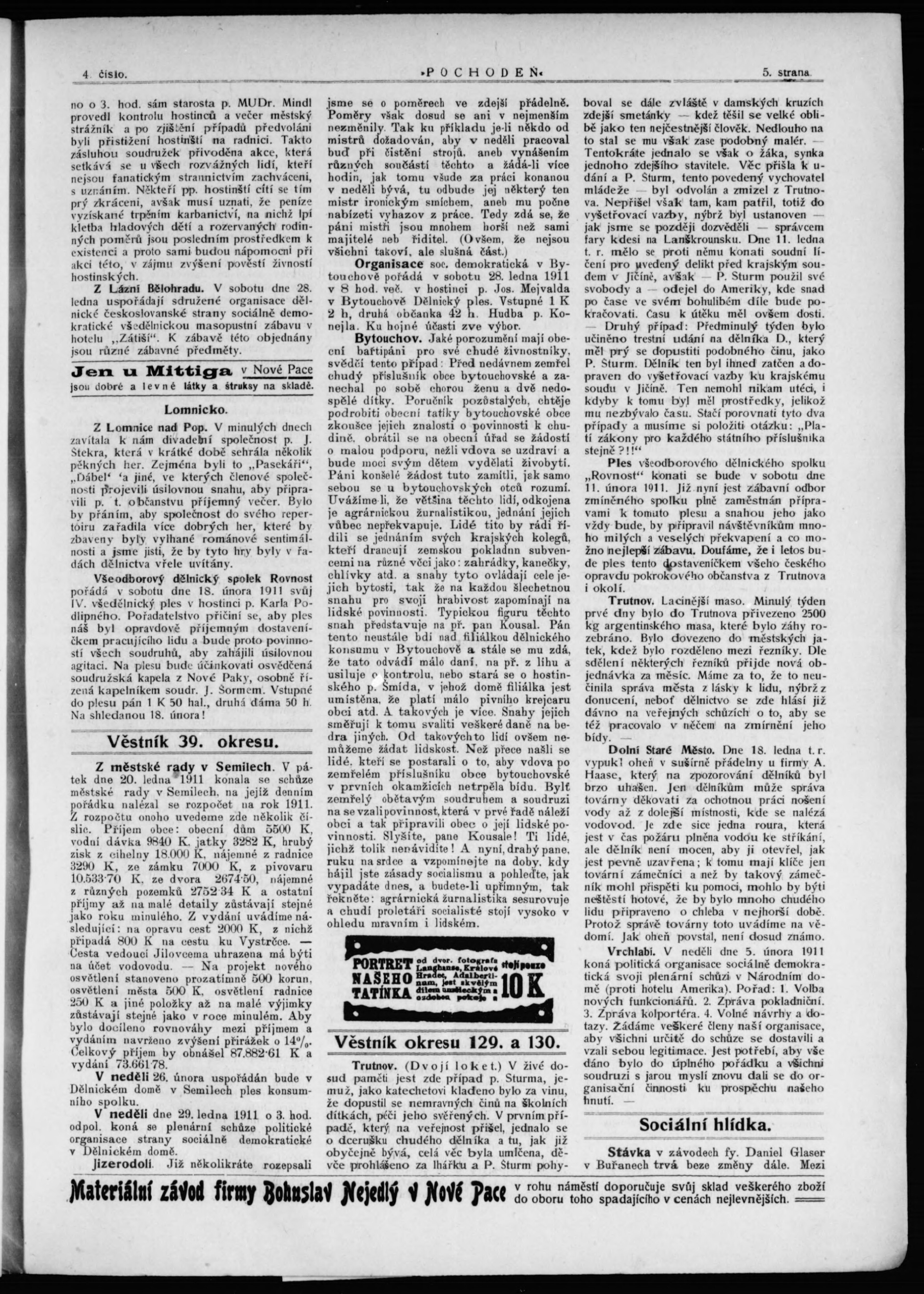 * Datum vydání výtisku: 27.1.1911 Číslo výtisku: 4